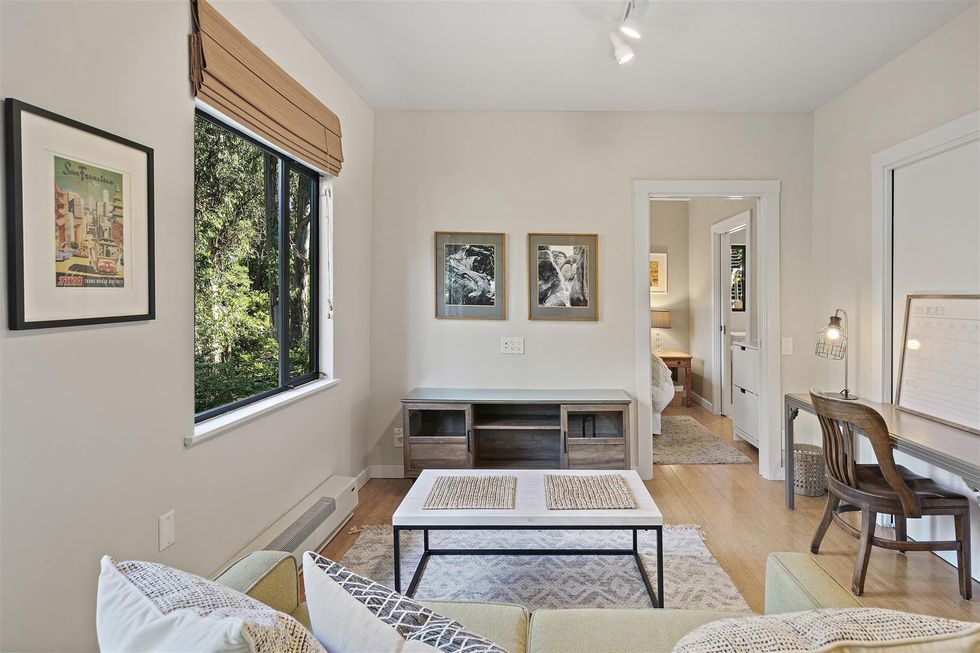 The studio apartment has a separate entrance with its own deck, eat-in kitchen, cozy living room, one bedroom, and bathroom. This studio comes in handy when hosting family and friends visiting from out of town.