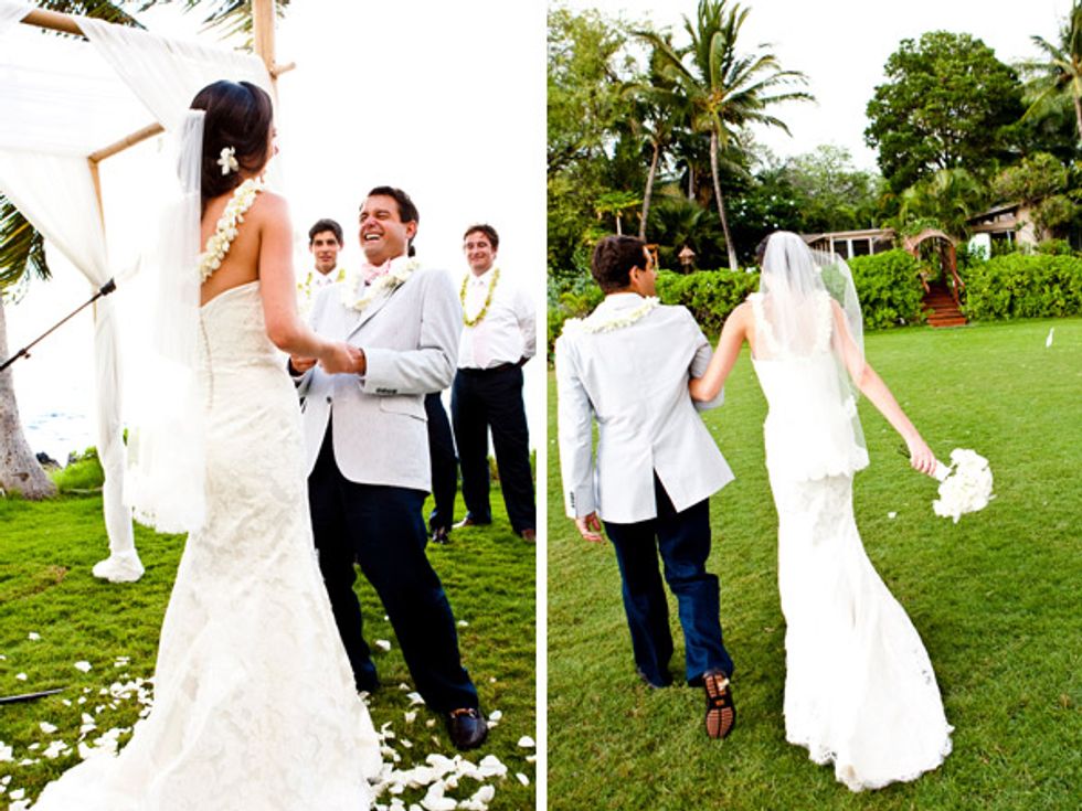 The vows, conducted by Reverand Alapaki, a man Ali dubs “Mr. Hawaii,” were filled with laughter. “It was a sweet and not terribly serious ceremony,” she says. “That’s not us. We are more light-hearted and loving.”