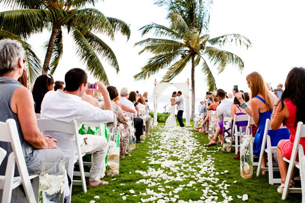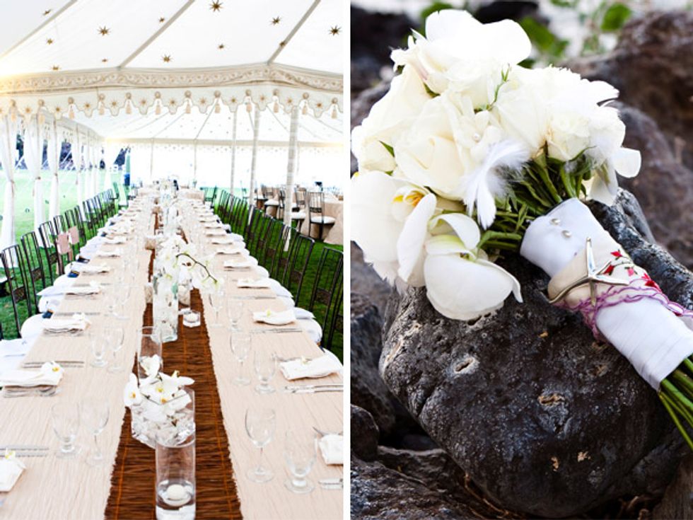 The ceremony took place at the Sugarman Estate, an old homestead on West Maui with stunning ocean views. “There are so many weddings on Maui, and many of them take place at the same locations,” says Ali. “We wanted something different and more interesting. The difficulty with a place like the Sugarman Estate, as opposed to a hotel, is that you have to bring in everything—like tables, tents, and linens—to the site.”