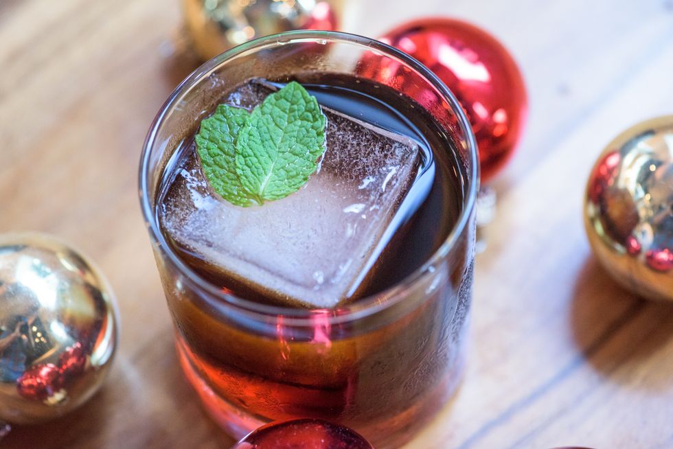 This Elf on a Shelf is for adults only, made with Armagnac brandy, rye whisky, Genepy, Carpano Antica vermouth, and mint. // 1915 San Pablo Ave., Oakland, hopscotchoakland.com