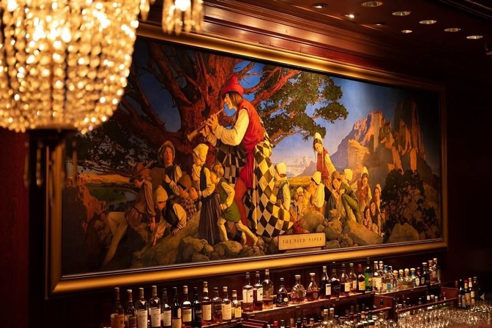 Across the street from The House of Shields lives another timeless beauty, the Pied Piper. Named for Maxfield Parrish’s bizarrely whimsical mural of the magnetic children’s musician, the Pied Piper has mosaic tile floors and rich wood-panelled walls that lend it an ornate warmth. In business since 1909 as the house bar for the enchanting Palace Hotel, the space today boasts a modern fireplace, cozy armchairs, and mirror-topped marble coffee tables—plus, a cut-glass ceiling that is a companion piece to the hotel’s crowning Garden Court glory. The Pied Piper doesn’t just do cocktails and late-night bites—the former reminiscent of early SF, the latter sandos and a few other dishes that hit the spot long after dark. It also doubles as a full-service restaurant from 5pm to 10pm, with fare like pan-roasted sea bass and braised beef short ribs.