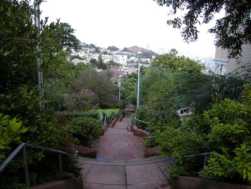 It starts outside of an unspecified North Beach cafe when one of the prime suspects of interest a murder case is run down by a black Mustang right after crossing Washington Square Park, where a troupe of elderly Chinese people are doing Tai Chi as they often do on early mornings. Leaving his coffee to cool, Caruso speeds up the hill and abruptly finds himself ditched by the black mustang at Graystone Terrace, an almost hidden route at the base of Twin Peaks (halfway across the city!) which hides some of the best hill views in the Mission. Spinning the car into a U-turn, he rounds Graystone Terrace and cruises down the hill to an ocean view finding himself trapped one hill away from the Mustang on what looks like Russian Hill Open Space, an odd parcel of land owned by SF Public Utilities Commission that's just above Bay Street and Russian Hill Park (and right next to Gary Danko). In a move surely not approved by Parks and Rec, he takes the easy way–straight over the grassy hill–and pops up back on Grant Street, right outside of the Broadway Tunnel, almost back where he started on the Chinese side of North Beach.