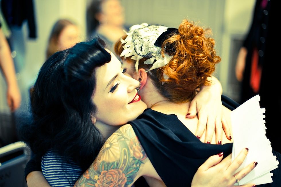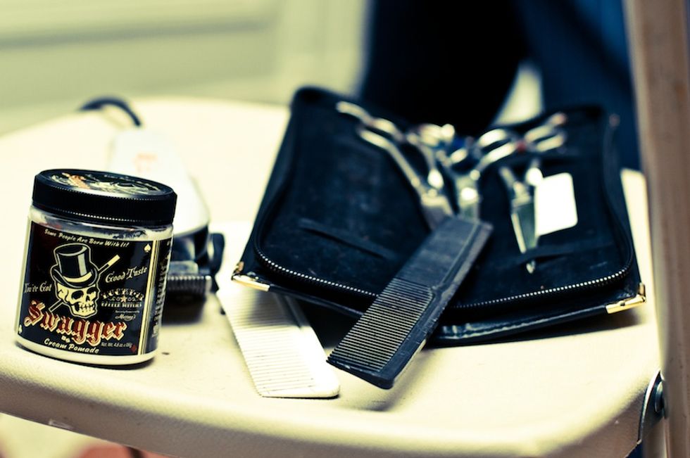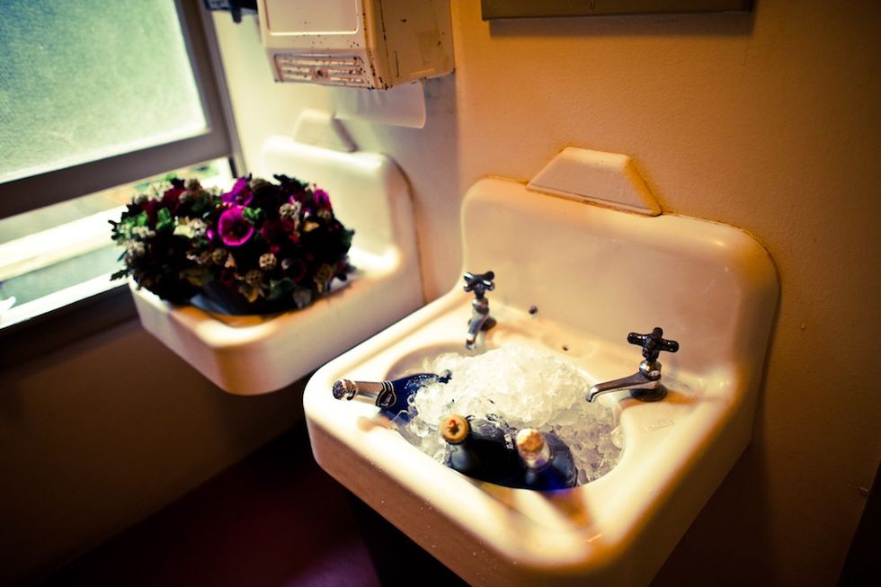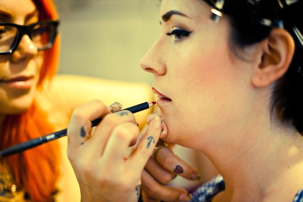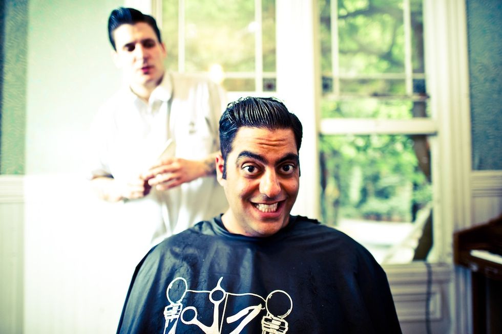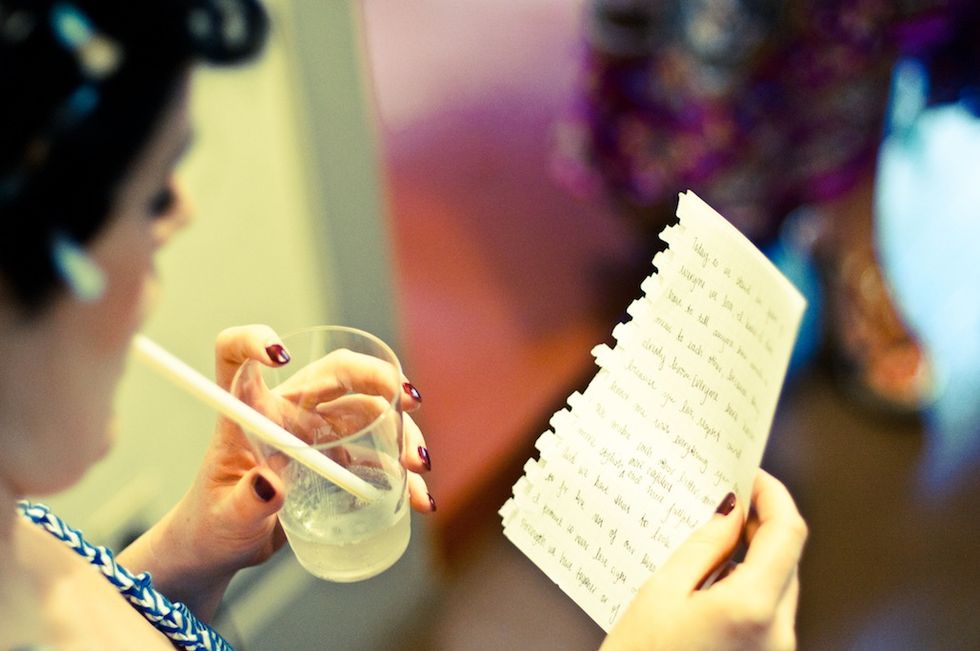 The groom got ready with some man-time, treating friends to old school-style pompadour haircuts by Nicky the Barber of Bay City Barber Salon, while the bride’s retro-style ‘40s coif was masterfully crafted by Miss Summer of On Mars on Fillmore Street.