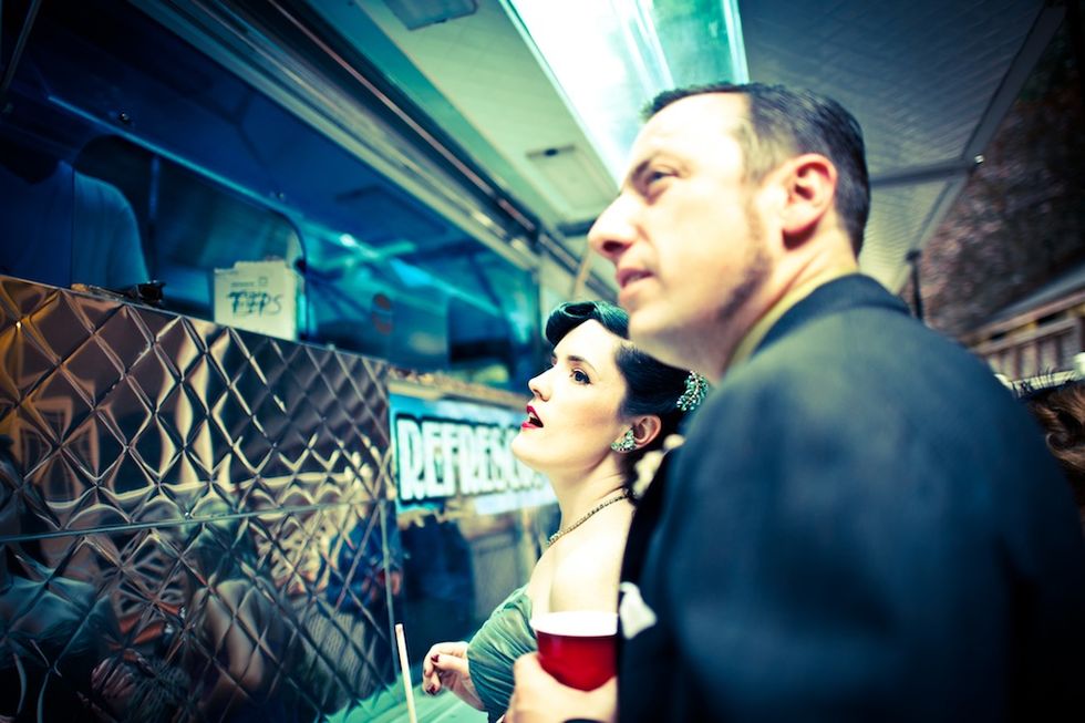 Guests noshed on tacos from El Tonayense truck and handmade gelato from La Copa Loca Gelato, then danced the calories away to ‘50s rockabilly music by DJ Oran. Scott Fong Photo captured their enchanted memories using a style that combines modern photojournalism with vintage photo style colors and finishes. Event coordination was executed by Libby Garrison.