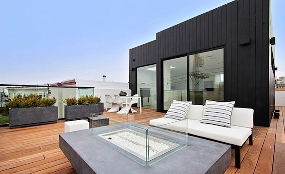What: A newly completed project– and asking $4.495M– by San Francisco designer/builder/architect Amir Mortazavi, this 5-bed, 4.5 bath house is manages to be both elegant and casual at the same time– and all it's in the details, from the lower-level au pair suite to the charred-cedar clad pentroom. Below, the living/dining and kitchen areas occupy the main level, and note the floating walls and ceilings– no baseboards, plus a horizontal cove with LED lights instead of crown molding. The stove exhaust fan is the panel in the kitchen ceiling.