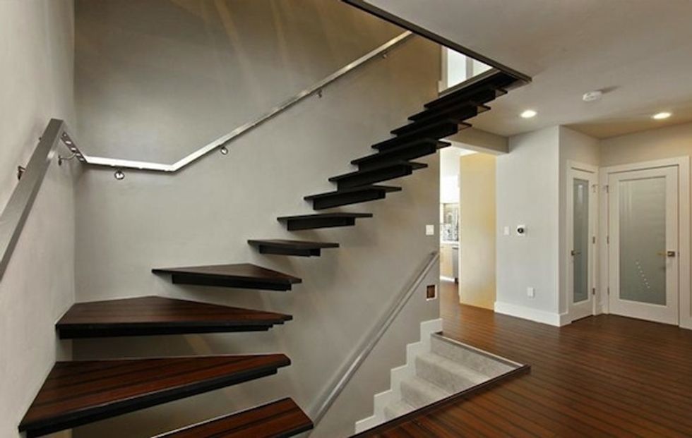 The first thing you see on entering the house is the new– and floating– staircase:
