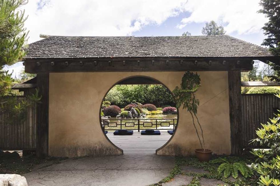 After self-exfoliating on the outdoor deck, it's straight to the showers to wash off what remains. The cedar clings stubbornly but the endorphins are kicking in, sending calm coursing like electricity through my parasympathetic nervous system. Clean, dry, and once again berobed in a lightweight kimono, I float to the wooden deck in the meditation garden, a lovely labyrinth of water, vegetation, stones, and sand raked in perfect parallel-lined swirls which is ranked among the top Japanese gardens in the U.S.