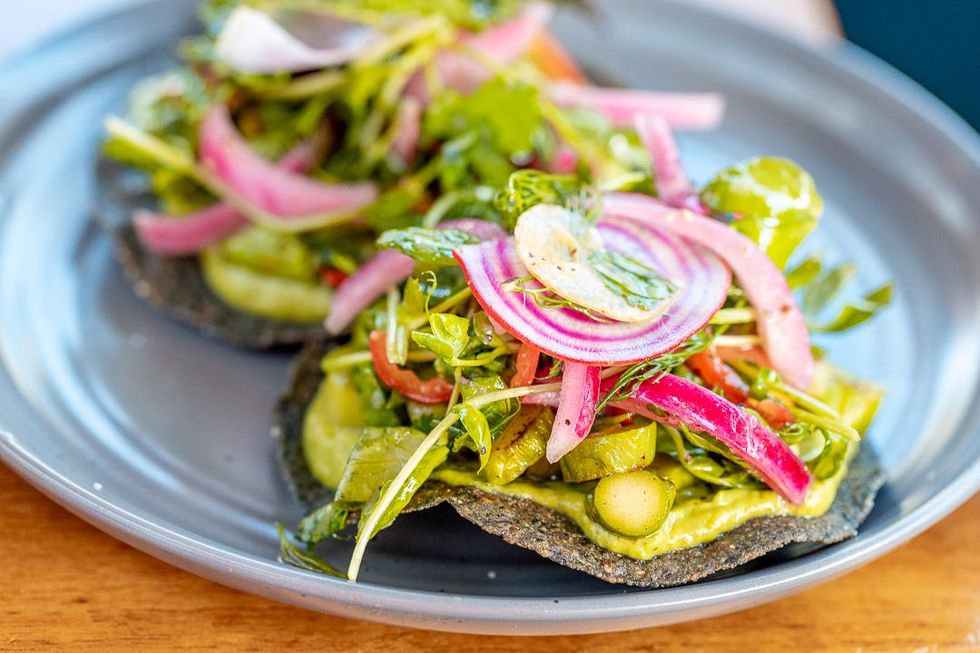 Vegetarians will quickly notice the menu skews in their favor with sweet potato tacos, asparagus tostadas, frijole bean dip, and charred cauliflower all on offer. Meaty options are fewer but equally delightful. Omnivores must order the beef tacos if for no other reason than Chef Nick put a lot of effort into them: "It comes out to be a 36-hour taco," he says.