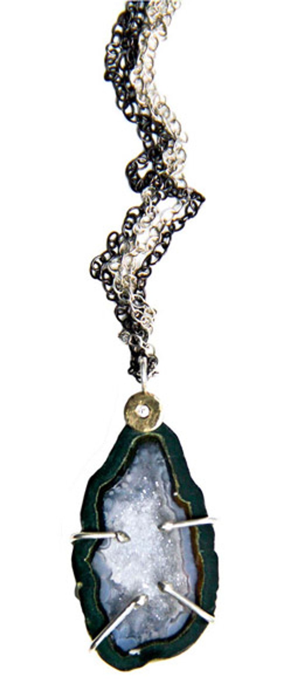 ![]() | SARAH SWELL Designer Sarah Greenberg’s passion for jewelry-making was first ignited in a college silversmith class. She launched her first collection in 2008 after earning a degree at San Francisco’s Revere Academy of Jewelry Arts, and she’s never looked back. Drawing inspiration from the Earth, Greenberg created this geode necklace as part of her fall line. The piece layers well over the season’s loose, drapey styles. $320 at Collage Gallery, 1345 18th St. (at Missouri), 415-282-4401, sarahswell.com |