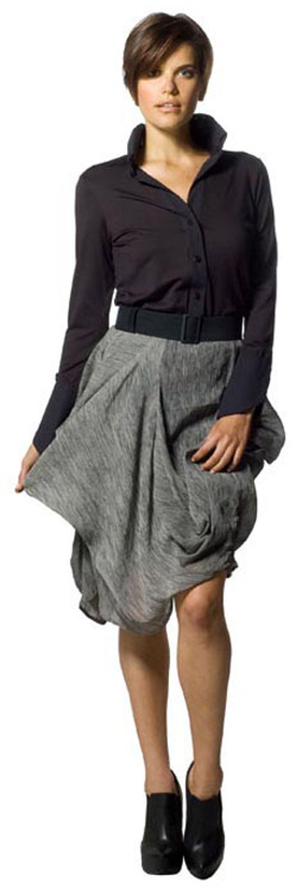 ![]() | GR.DANO Jill Giordano and Brian Scheyer of gr.dano have quickly progressed from small startup to nationally acclaimed label. The duo has shown during NY Fashion Week and was honored at last year’s California Design Biennial. They produce modern collections known for their architectural detail. Their latest is inspired by the de Young’s “Balenciaga and Spain” exhibit. This layered drape skirt and cropped top with a popped collar is a smart, all-purpose outfit meant to turn heads. $255 (top) and $405 (skirt) at 440 Brannan, 440 Brannan St. (at Zoe), 415-348-0000, grdano.com |