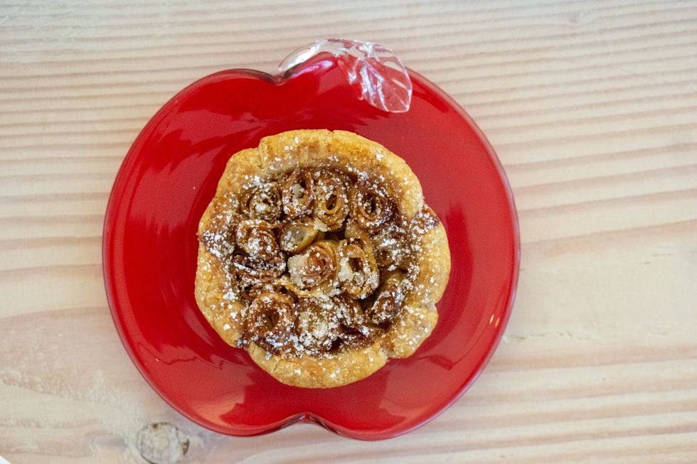 Palette's every surface is lovely, even the walls. A colorful floral mural by Velia De Luliis blooms next to the kitchen, hand-painted ceramic dishes draw the eye as much as the food, and the white walls of the gallery and boutique provide a nice contrast to the deep teal splashed around the dining room.