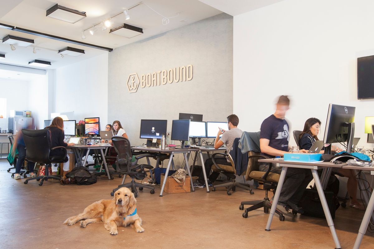 Billed as the Airbnb of boat rentals, SF startup Boatbound is, er, making waves, with growing demand necessitating an expanding team and better workspace. Check out their nautical digs. Boatbound called upon Homepolish designer Felice Press to revamp their local HQ, and she set out to emphasize the brand’s relaxed, fun and hardworking attitude by playing off its colors, cute logo, ping-pong table, and charming nautical theme in the hangout areas without getting too cheesy. Her strategy was minimal but effective: “Basics like simple desks and chairs can really blend into the background when the focus is put on extra details. We bought some really great vintage nautical buoys that liven and brighten up the space, but were cheap and really reflect what Boatbound is.”