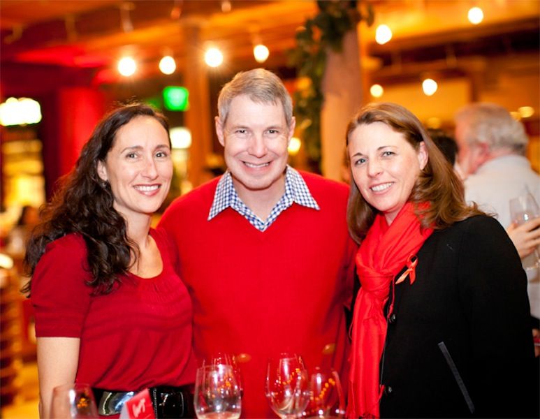 Rebecca and Richard Henley and Lesa Mussato showing their support by wearing red on World AIDS Day