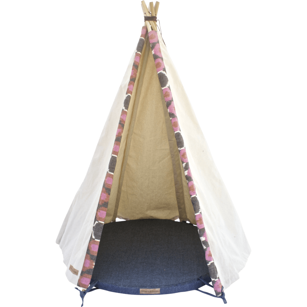 1. Saguaro Tipi - Each dog tipi is handcrafted in California from 100% cotton, birch wood, and microfiber suede cord. The design essence aims to deliver a comfortable den-like environment perfect for a Saguaro sunset or cozy fireside snooze.