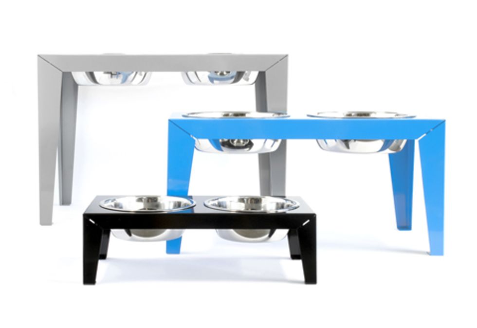 2. Dogear Raised Feeder - Contemporary stylish raised double feeders come in 3 sizes in powder-coated steel with rubber non-skid feet. Available in black, blue, grey and white and includes two stainless steel bowls.