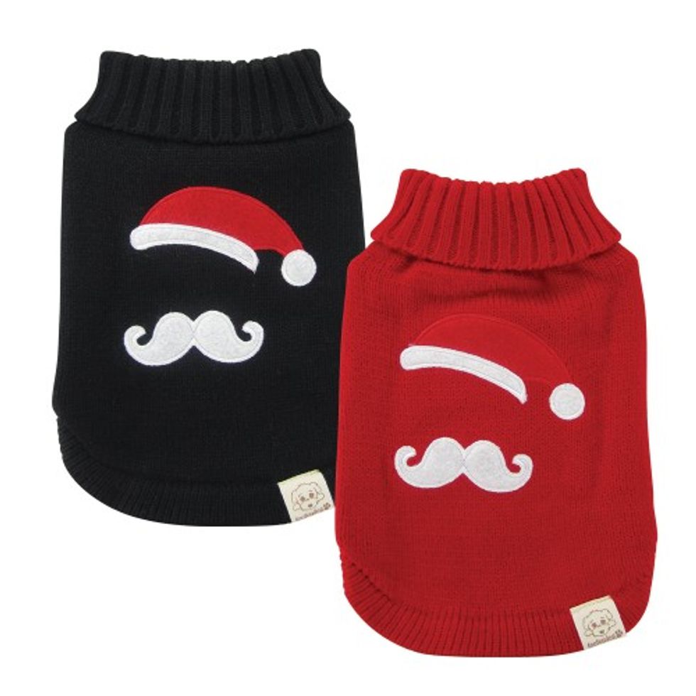7. Santa Stache Sweater - Turtleneck pullover sweater is a wardrobe fundamental with a quirky twist. Super soft and warm sleeveless design means your pooch can strut in total stylish comfort.