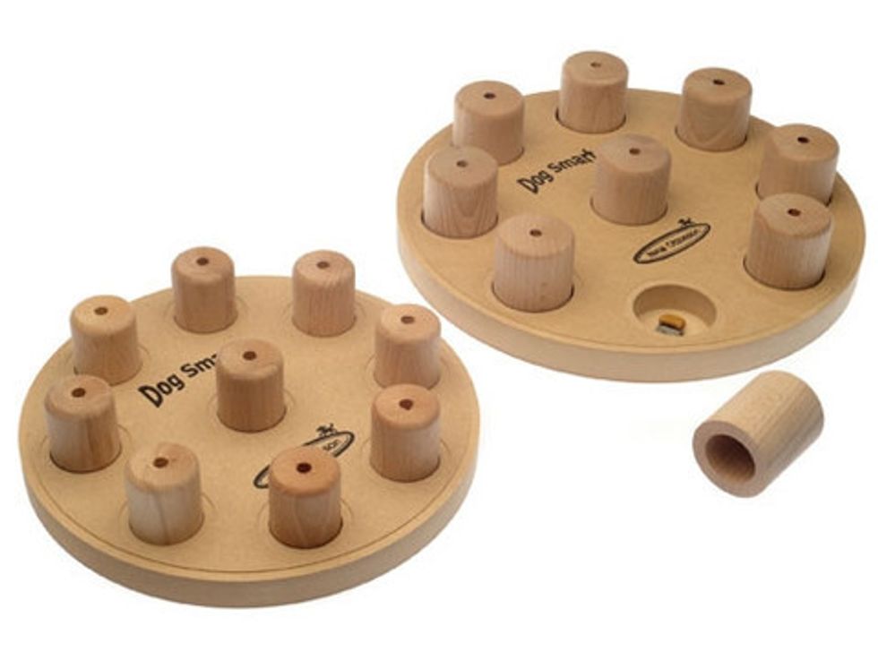 10. Dog Smart Interactive Dog Toy - A beautifully designed, modern interactive dog toy. Specially made to promote stimulating, reward-based play. The wooden design looks great in any home.