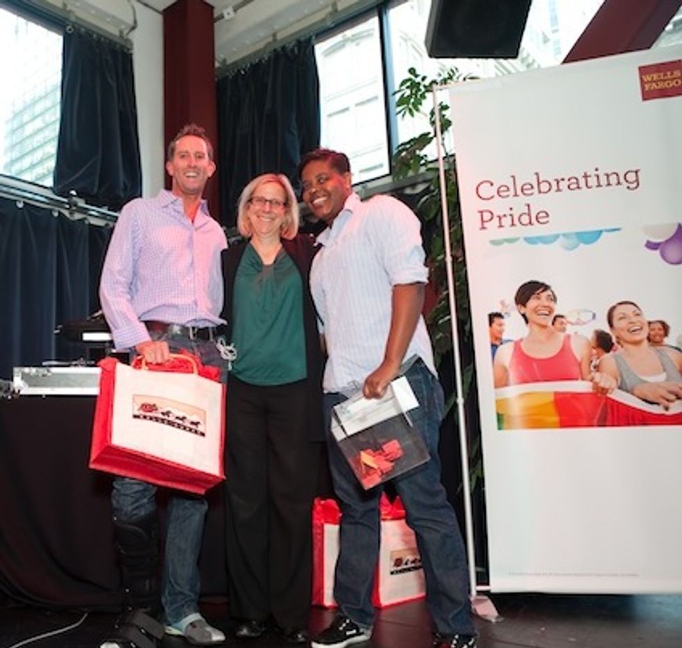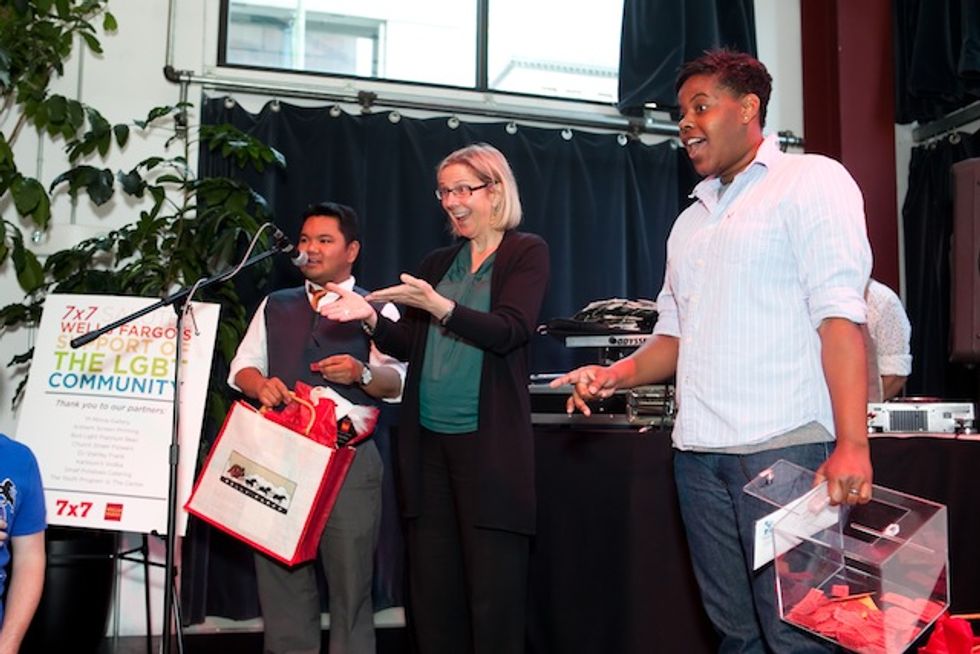 The party also raised awareness of the Youth Program at the SF LGBT Center, a beneficiary of Wells Fargo's support. Executive Director Rebecca Wolfe and volunteer Michelle Wright conducted a fantastic raffle for cherished gift bags, which included cute stuffed pony toys from Wells Fargo; tickets to Frameline36, the annual SF LGBT Film Festival; and an awesome grand prize courtesy of Carmel Valley Ranch.