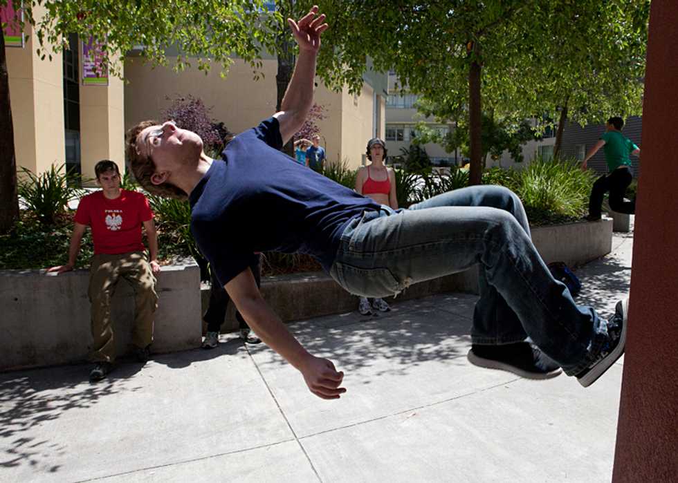 SF Parkour hosted the first ever San Francisco (inter)National Jam with Parkour Connections this weekend. Parkour fanatics hit the streets and walls of Oakland, Berkeley and Marin to bust out some gravity-defying moves.
