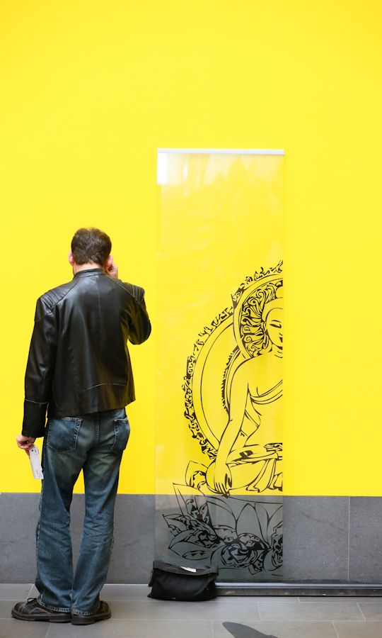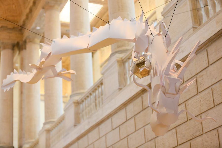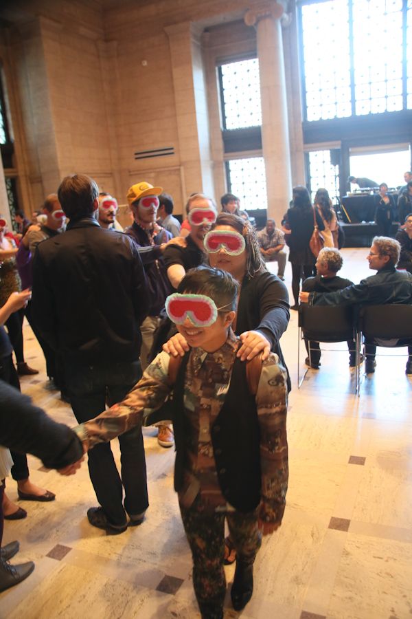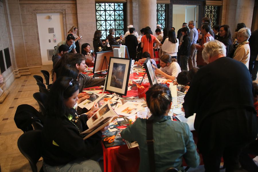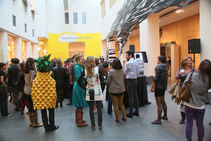 On July 26, artist led project, Space Bi, brought together 28 local artists for the "Taking Up Space" exhibition in a friendly takeover of the Asian Art Museum for one night only. Works were inspired by and sometimes critical of the museum's Phantoms of Asia contemporary art exhibition. Guests were also treated to solo shows in the store, pop up karaoke, fruit costumes, printed tortillas, alternative tours of the collection galleries, participatory activities, and more. All while sipping on yummy drinks and boogying down to music by DJ-in-residence Vin Sol.