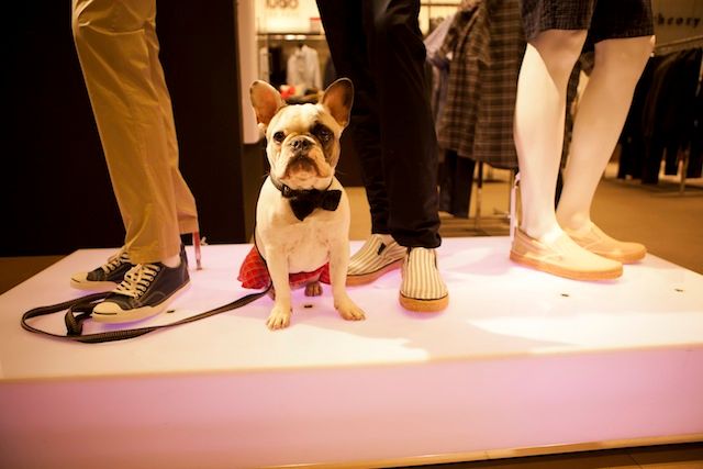 Juanita More!’s dog, Jackson More! models the latest doggie bowtie