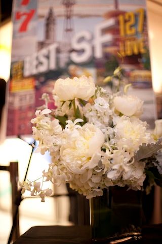 A gorgeous arrangement from award-winning Church Street Flowers in the Castro greeted guests
