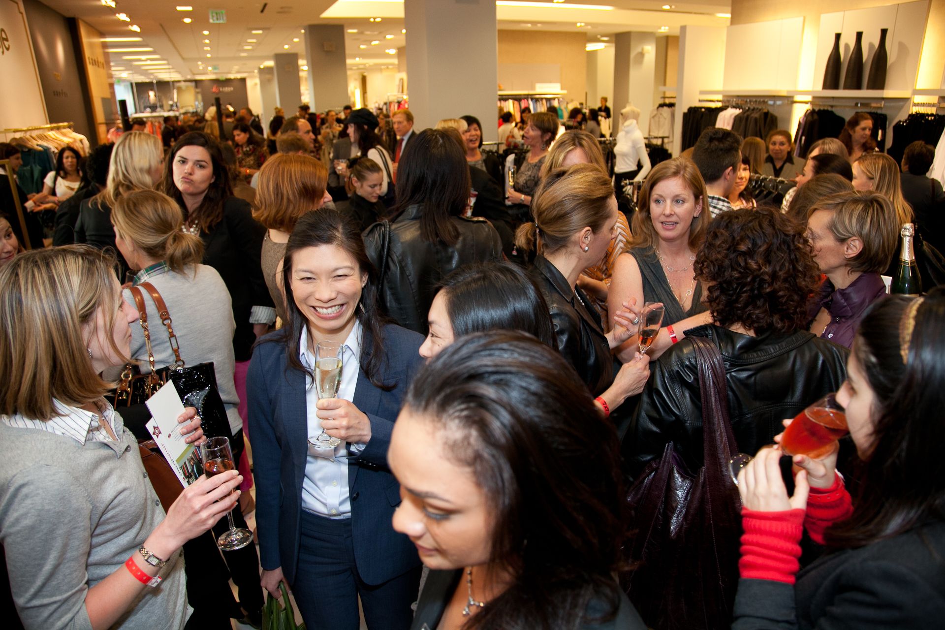 At the launch event, guests encountered contemporary fashions and suiting options with music by DJ Dylan Mahoney. Complimentary makeovers were given by Benefit cosmetics. Chandon sparkling wine and Wente wines were provided for guests to sip and enjoy, and E&O Trading Company provided tasty treats for the guests.