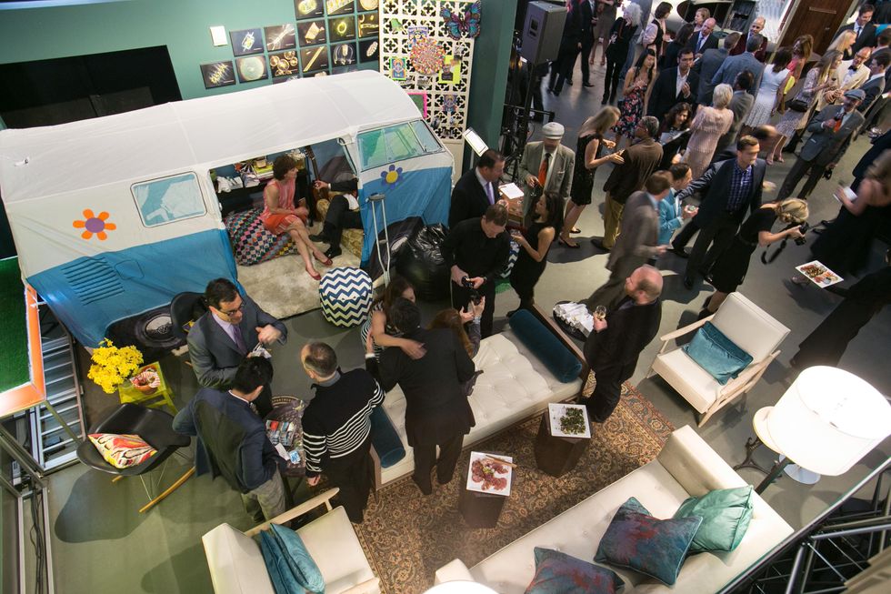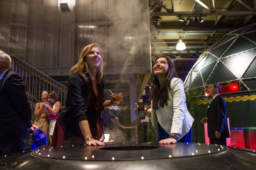 As the wine flowed and conversations swelled in the Bay Observatory, the party was just getting started at the Supper Club. Guests dined on sushi, artisanal salumi, and cassoulet in themed lounges that ranged from an antique apothecary’s chamber to an inventor’s laboratory, to a rock n’ roll VW bus campout, to a vignette paying homage in muslin to the classic Tornado exhibit. Seductive and haunting strains of the Earth Harp—an instrument with strings tied to the very structure of the building, making the museum itself part of the instrument—added subtle electricity to the already humming atmosphere.