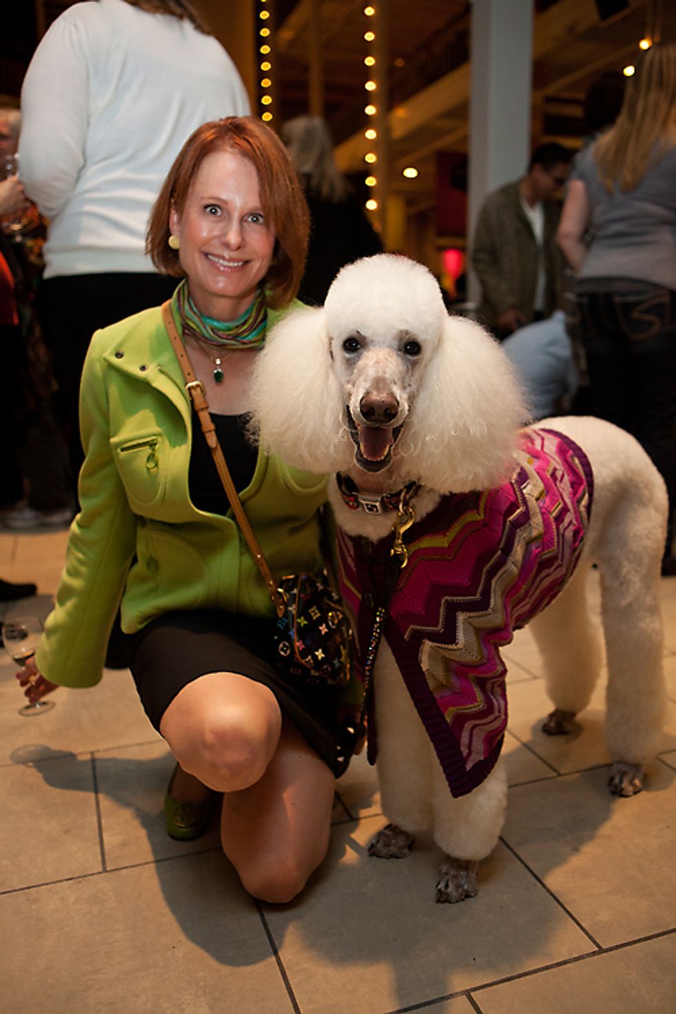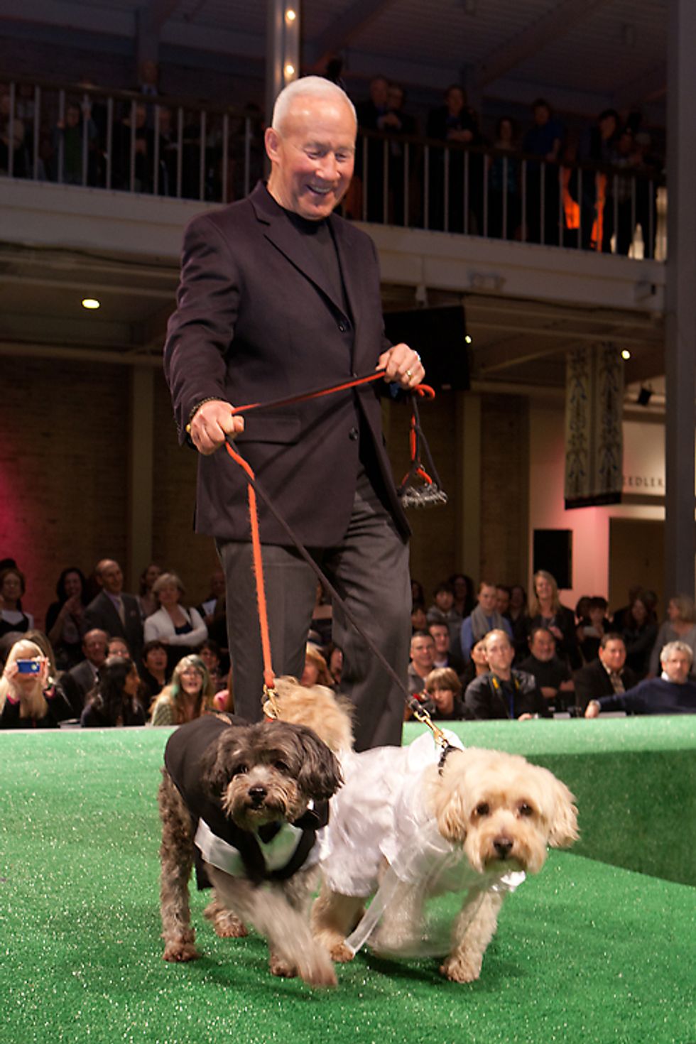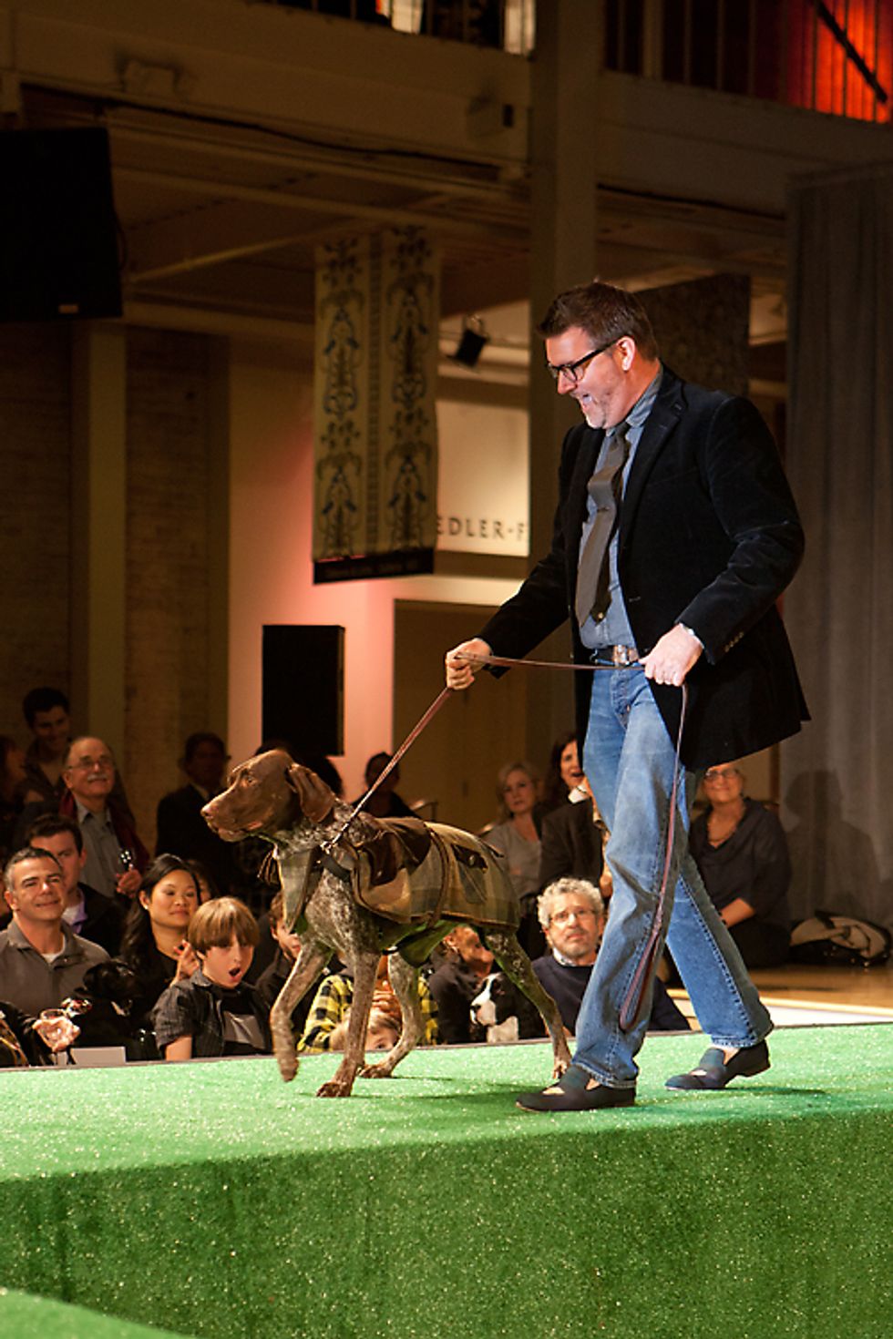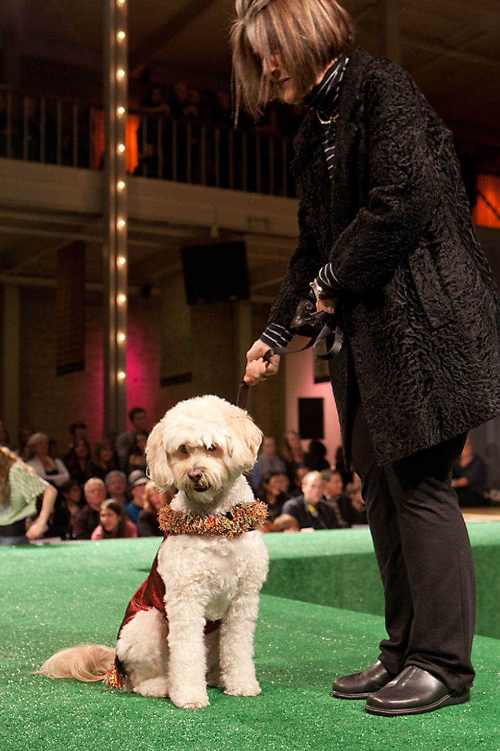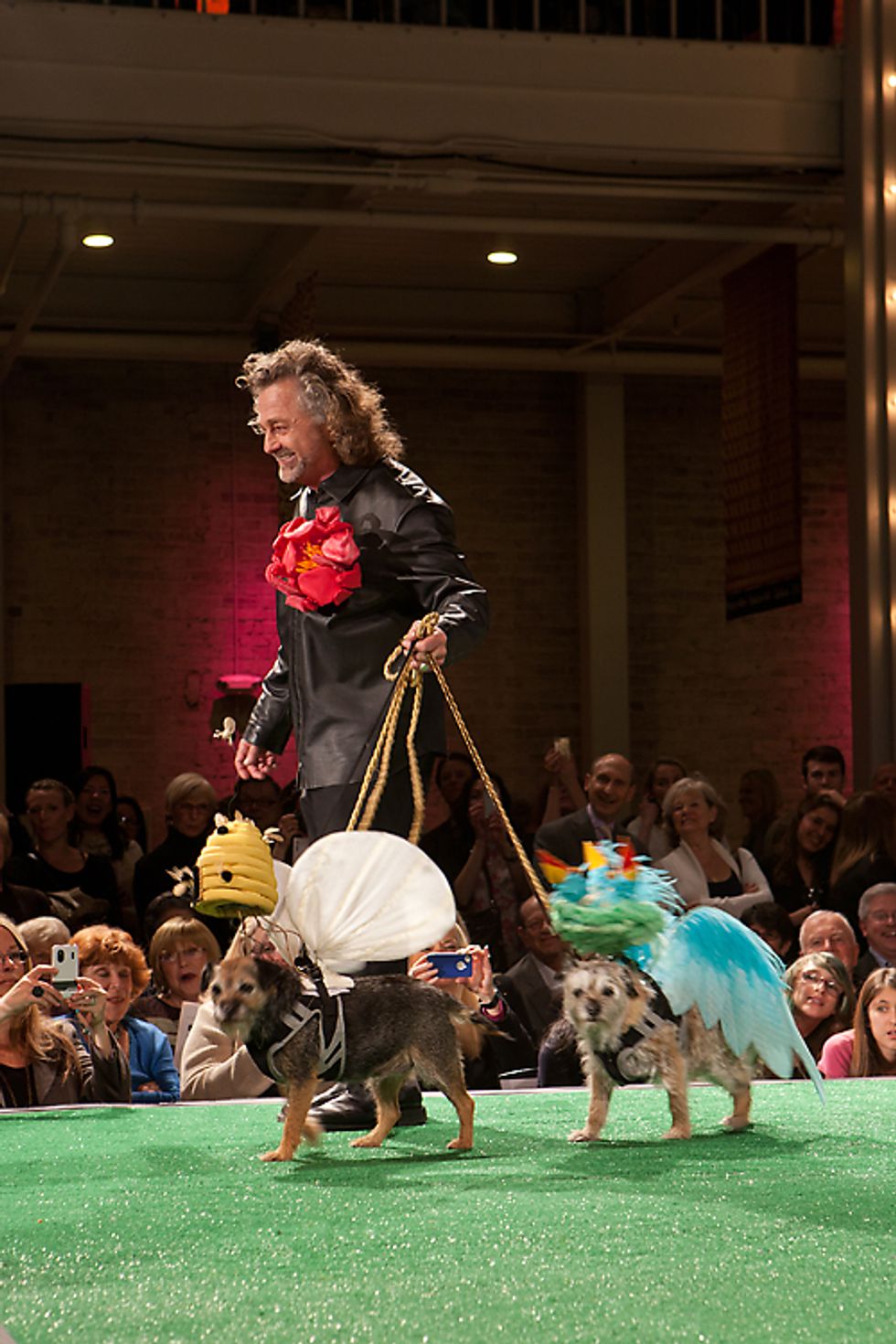 The main event featured almost 60 pooches prancing the runway, lovingly accompanied by prominent designers, artists and performers including Scot Meacham Wood, Beryl Silver, David Duncan Livingston, and jazz star Paula West. The chic canines were outfitted in fun outfits, some designed by BooBoo Boulevard, and some constructed with sumptuous textiles from the Design Center's most prominent showrooms.