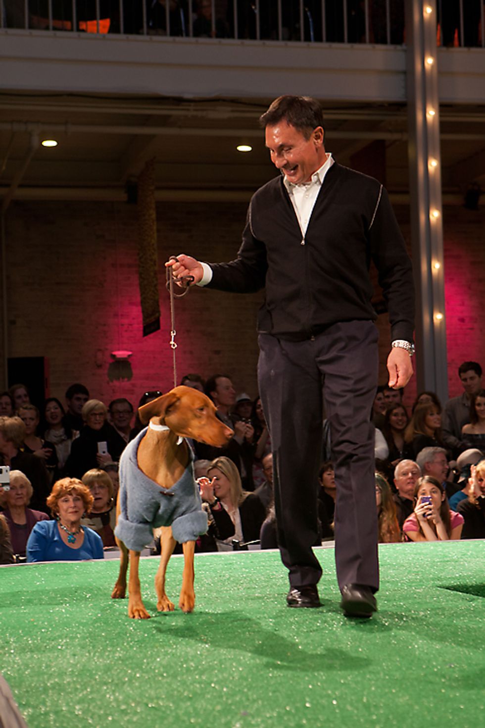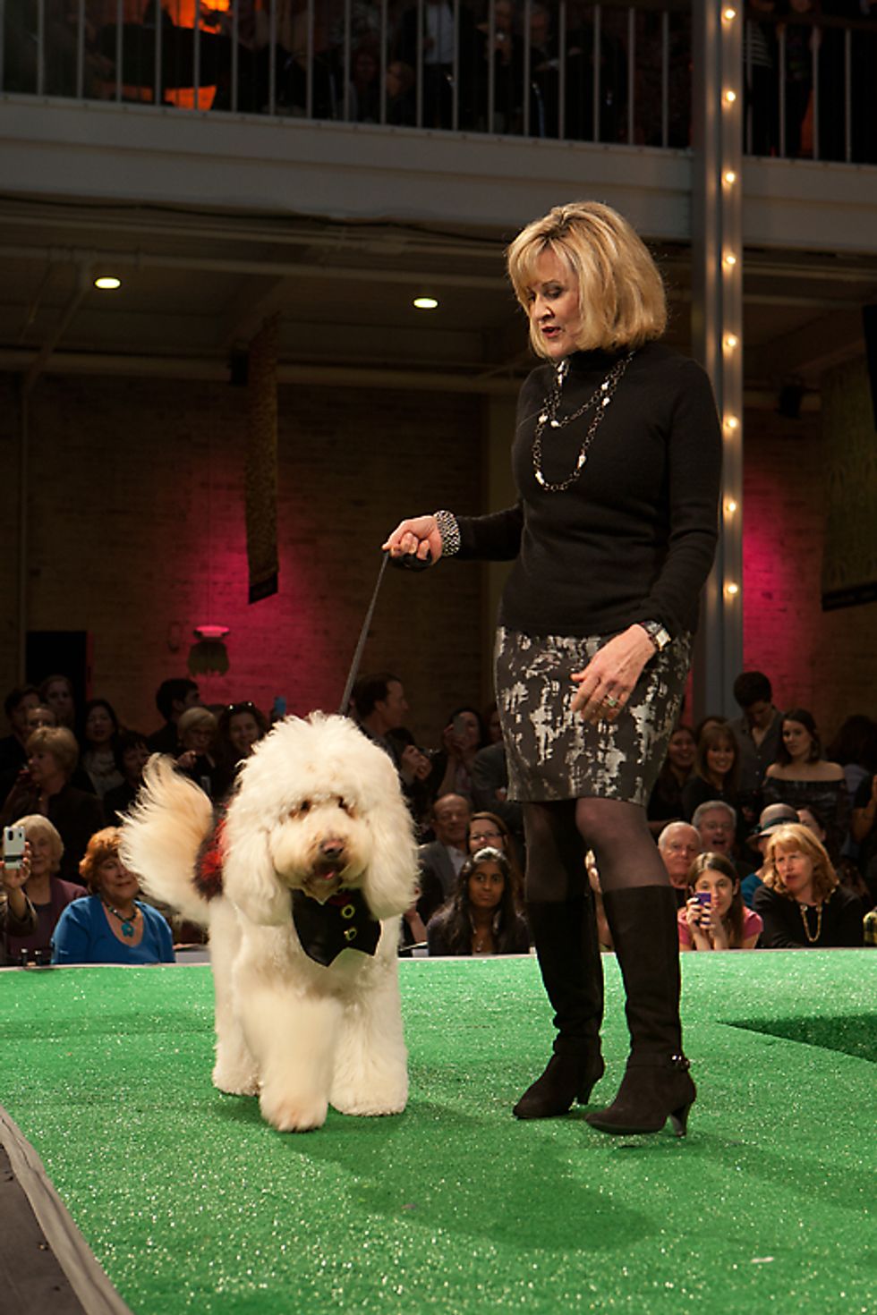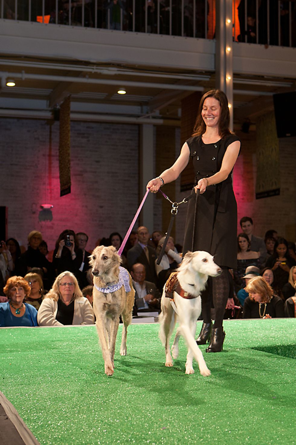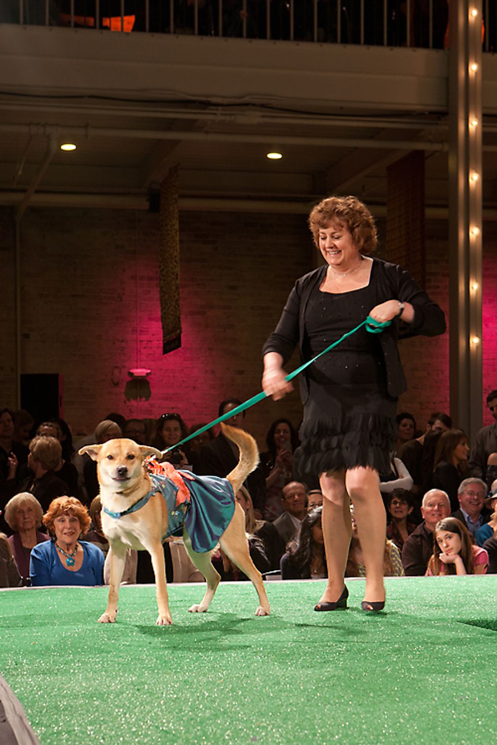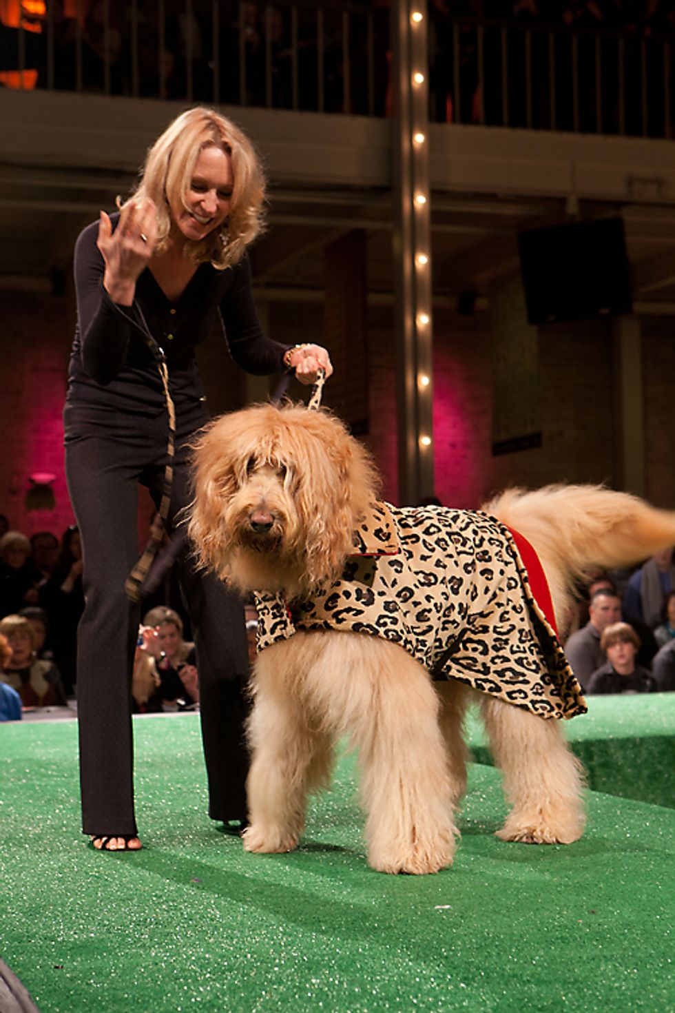 The main event featured almost 60 pooches prancing the runway, lovingly accompanied by prominent designers, artists and performers including Scot Meacham Wood, Beryl Silver, David Duncan Livingston, and jazz star Paula West. The chic canines were outfitted in fun outfits, some designed by BooBoo Boulevard, and some constructed with sumptuous textiles from the Design Center's most prominent showrooms.