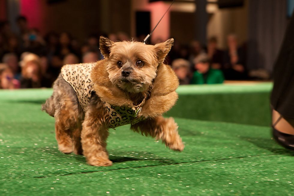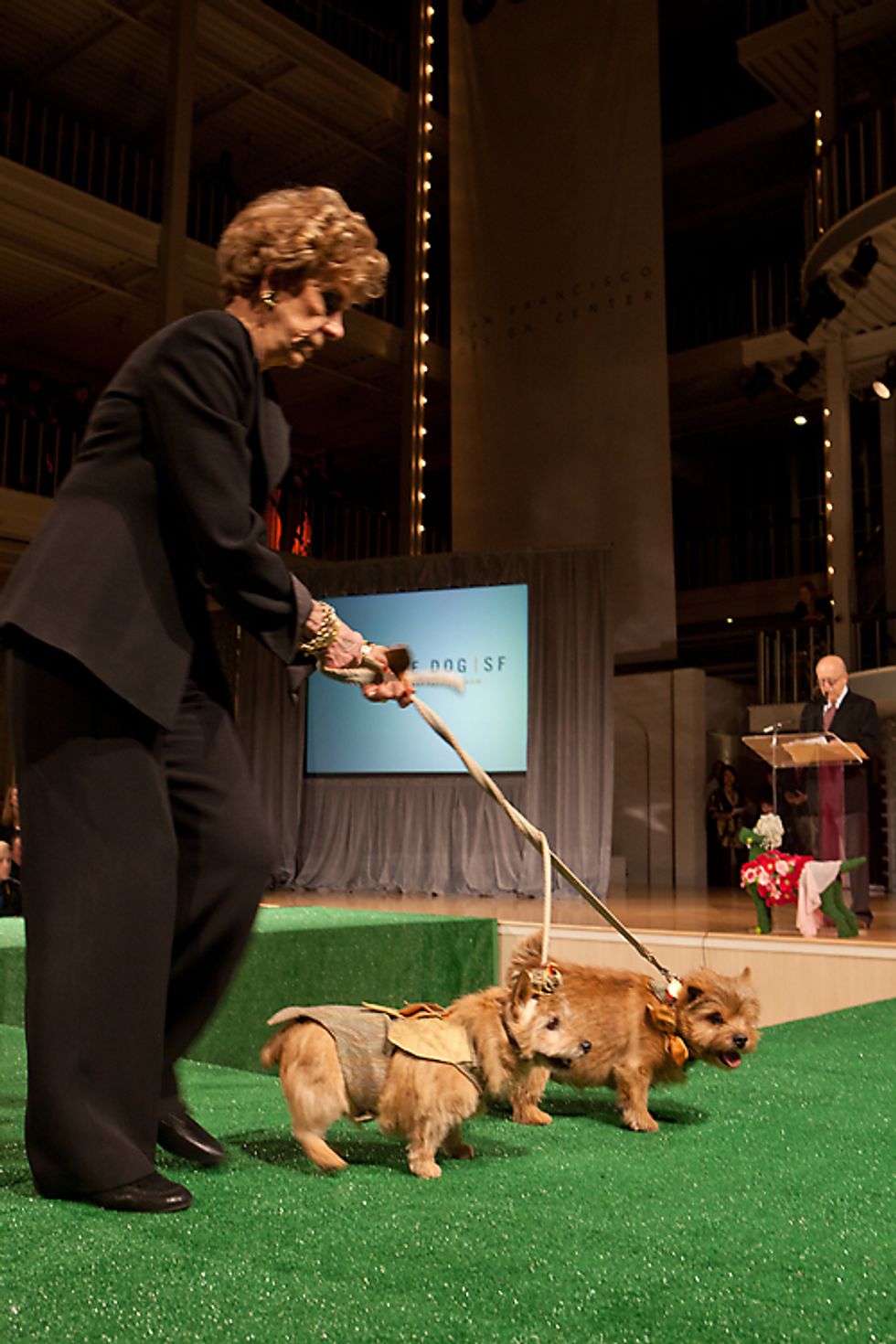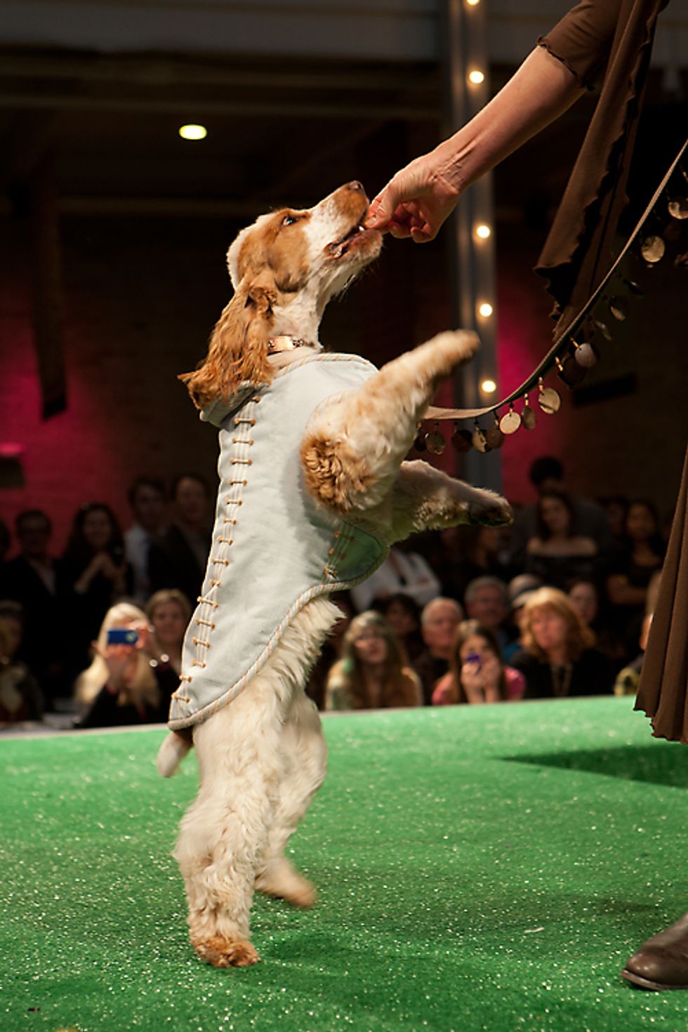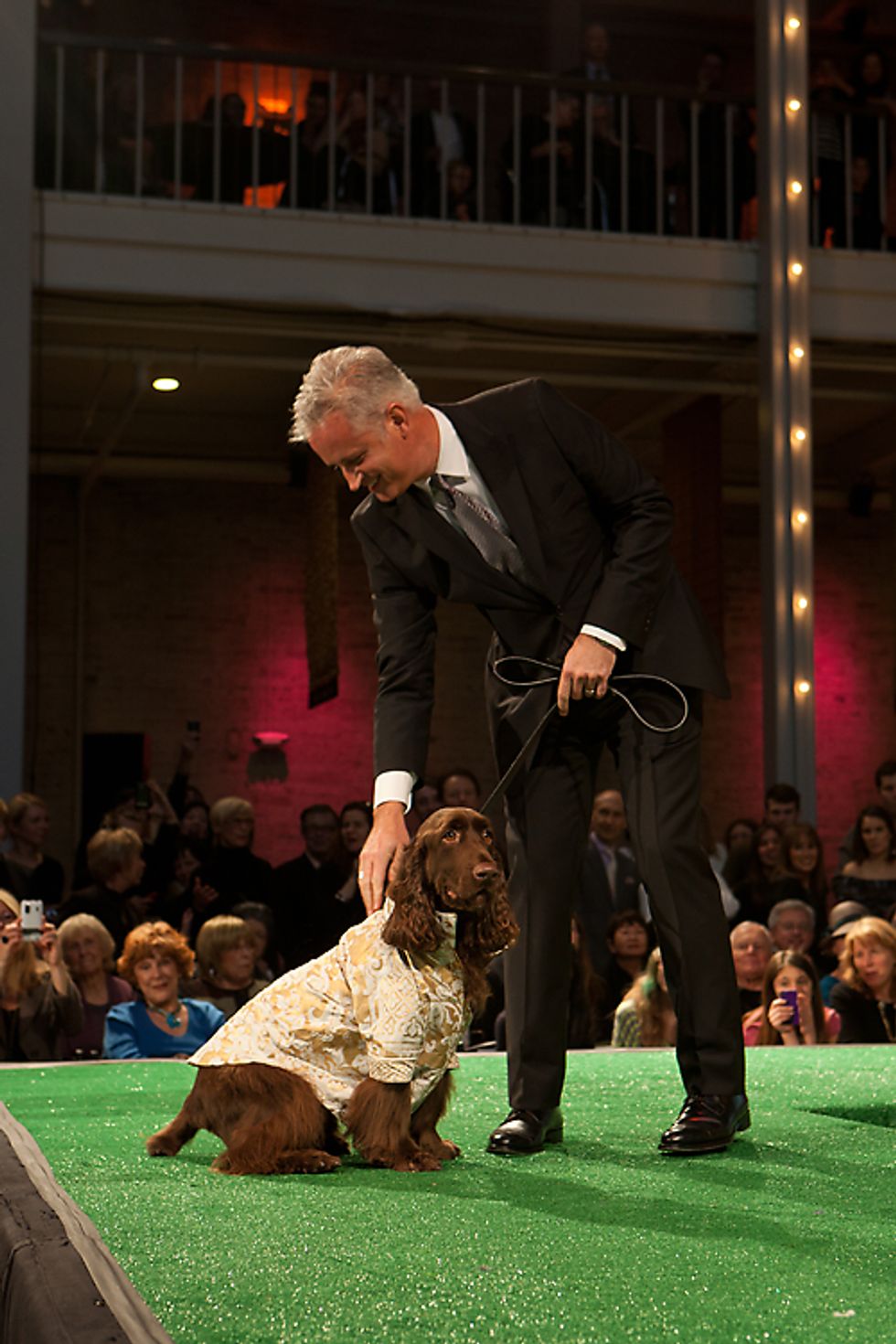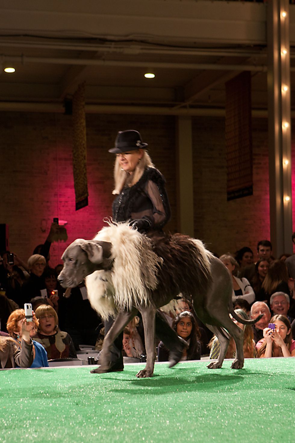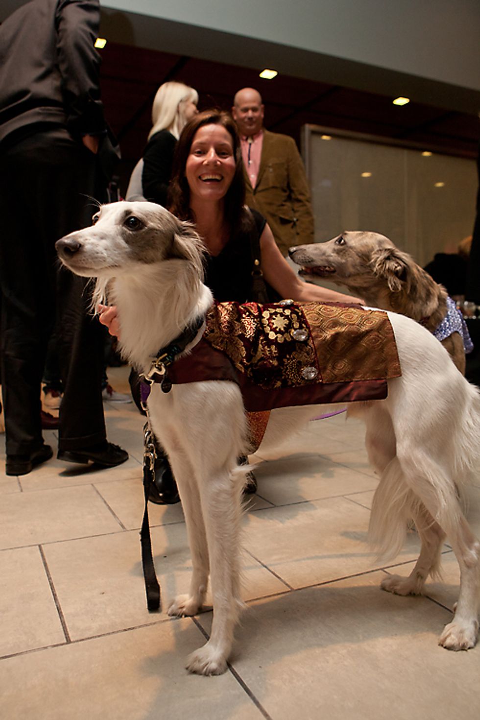 The main event featured almost 60 pooches prancing the runway, lovingly accompanied by prominent designers, artists and performers including Scot Meacham Wood, Beryl Silver, David Duncan Livingston, and jazz star Paula West. The chic canines were outfitted in fun outfits, some designed by BooBoo Boulevard, and some constructed with sumptuous textiles from the Design Center's most prominent showrooms.