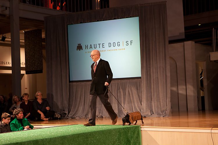 Haute Dog SF emcee Wilkes Bashford with Duchie the Dachshund