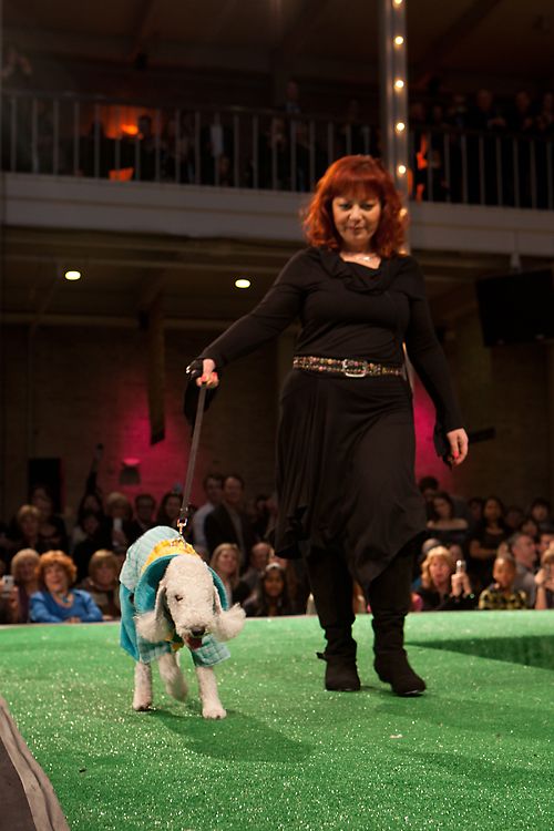 SF Giants fan Teddy the Bedlington Terrier walked by the SFDC's Beth Roseberry dressed as SF Giant Brian Wilson