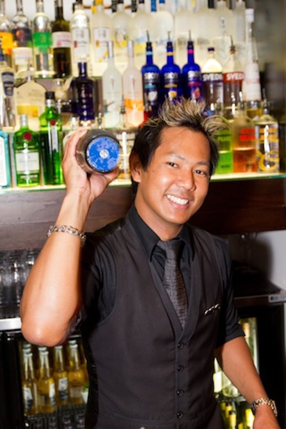 The rapturous crowd flooded the lounge to enjoy $5 specials on the evening's signature drink, The Dark Mark Logic, created by Osha Thai's bar manager Tou Meechukant—made with Maker Mark Bourbon, mango puree, peach schnapps, lemon juice, and fresh basil leaves.