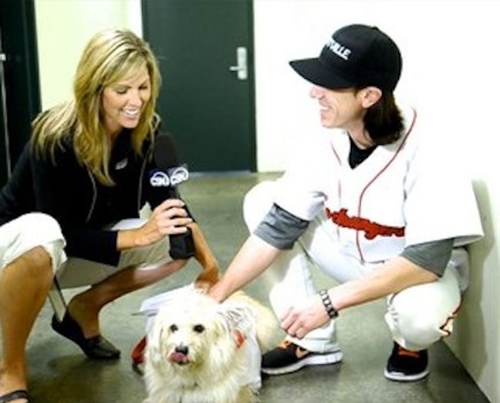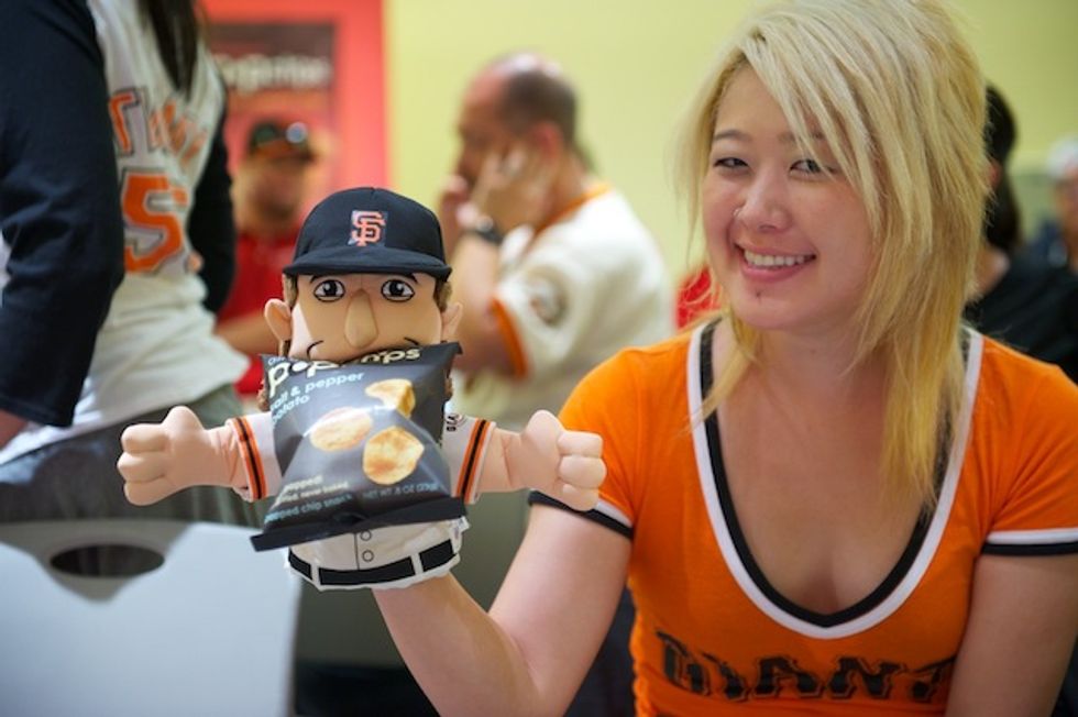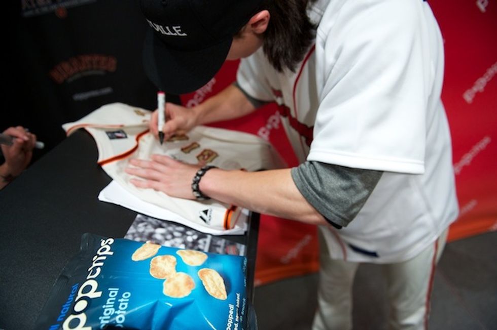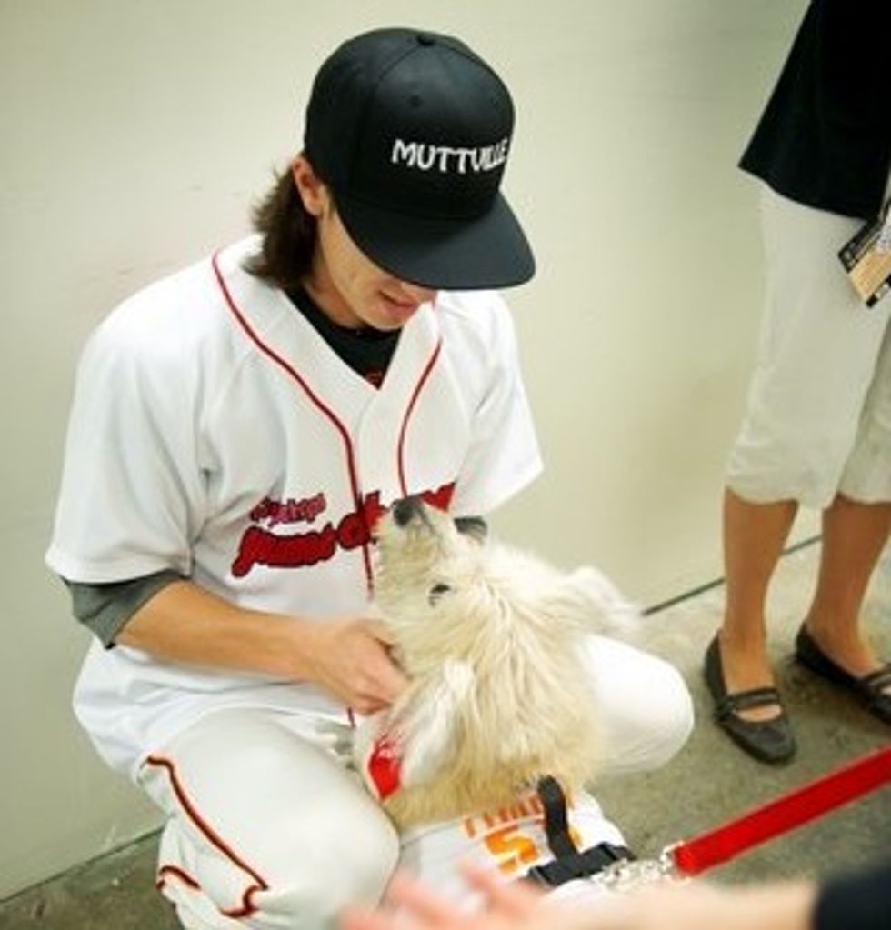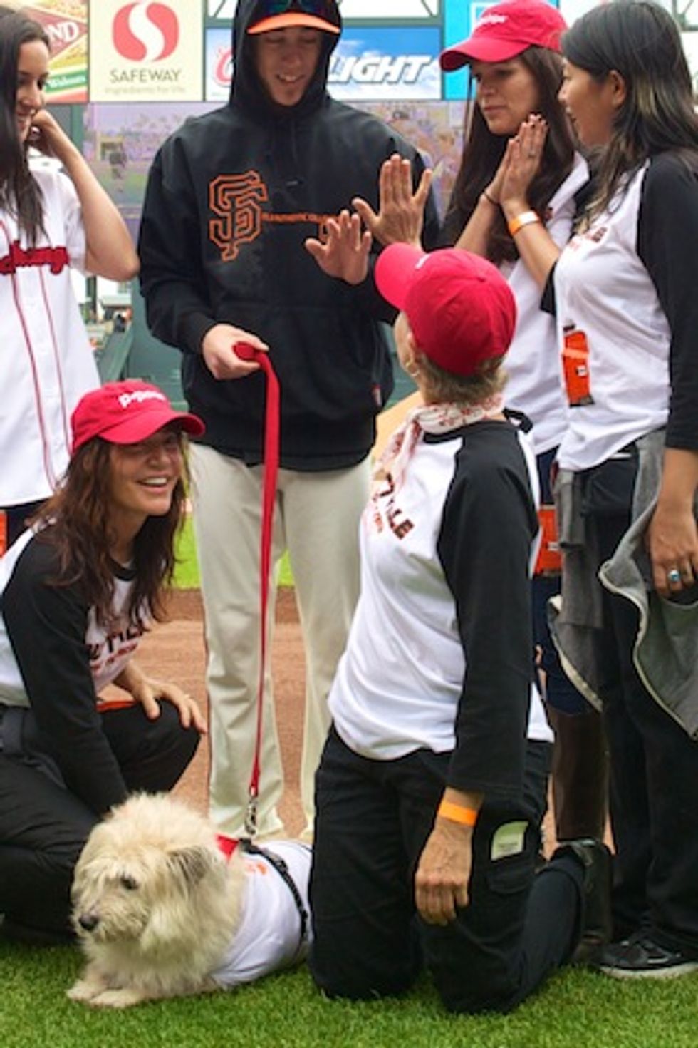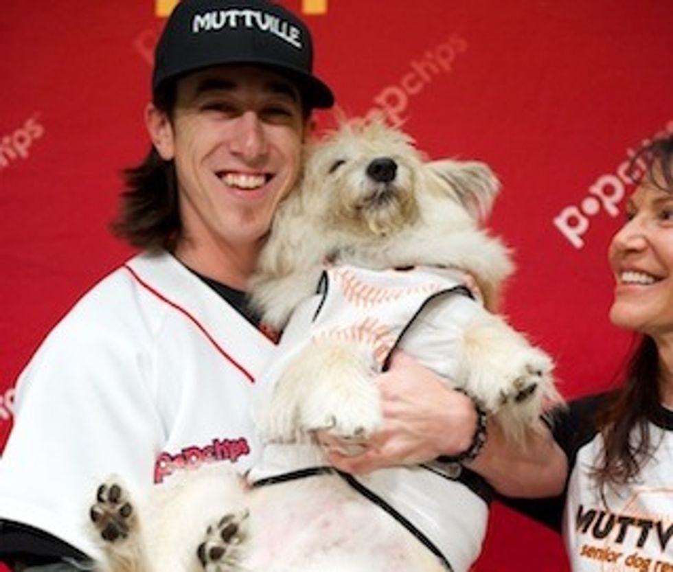 Hungry for change? Tim Lincecum is. That’s why he teamed up with popchips to “chip in” for charity. As a part of the popchips game changers program, fans were encouraged to submit ideas on how Tim could give back to the San Francisco community. After nominations were submitted, the community voted on the local causes and event ideas that they wanted to see popchips and Tim Lincecum bring to life. The top 5 ideas were shared with Tim and the cause that hit a home run, was the Muttville Senior Dog Rescue program. On Sunday, July 1st, prior to game start, Tim and Timmy (a long-haired mixed breed, 11-year old rescue) took to the field with the high hopes of building awareness for this very important local cause and finding a home for this very special dog as fulfillment of the popchips game changers program.