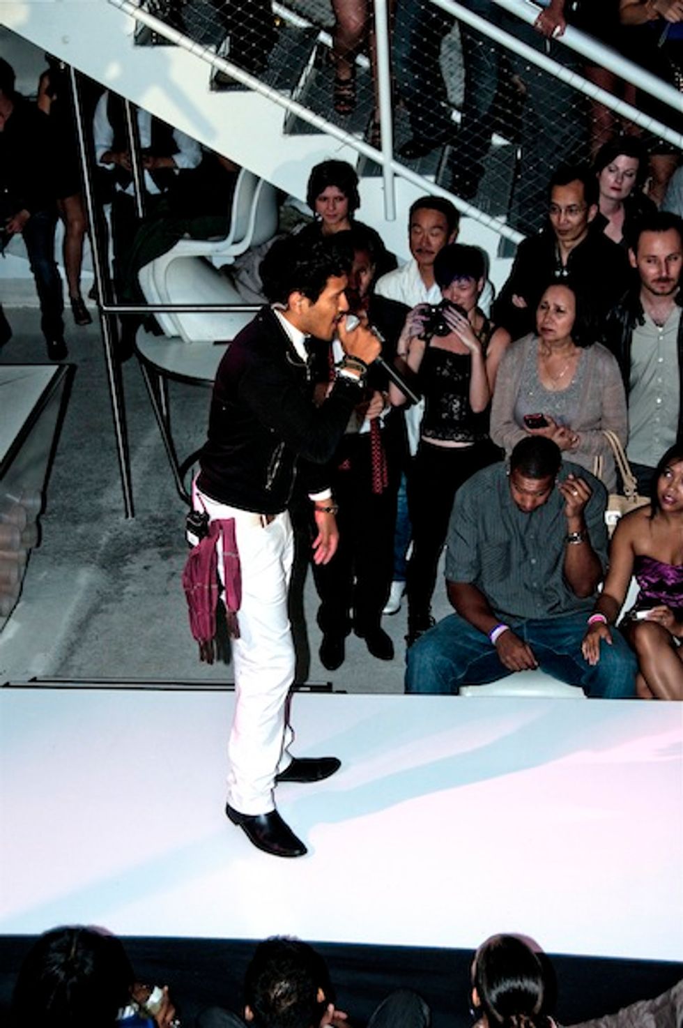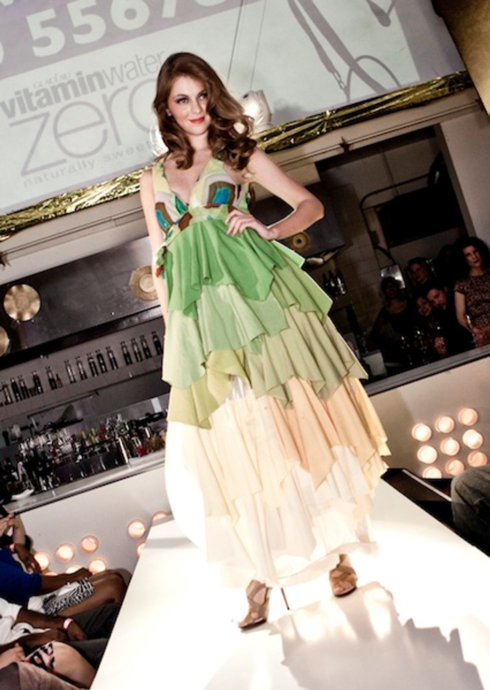 On August 11, the worlds of fashion, music, and art collided at Supperclub bringing an explosion of emerging talent to the forefront of entertainment. The white runway was lined with glowing VitaminWater Zero bottles, giving the atmosphere an energized vibe which was accentuated by the tunes spinning from DJ Ajax's turntables