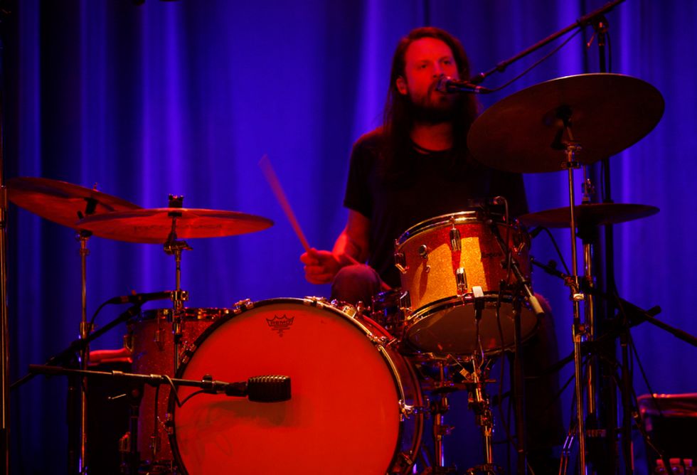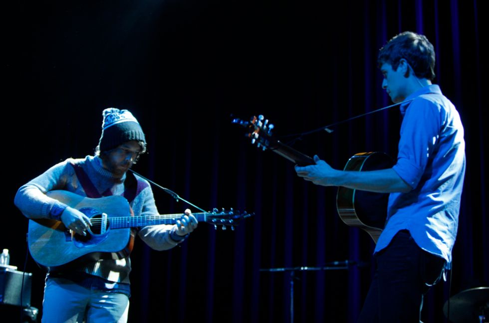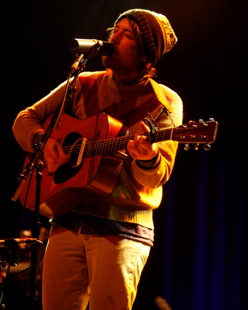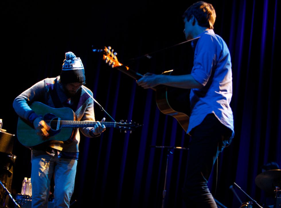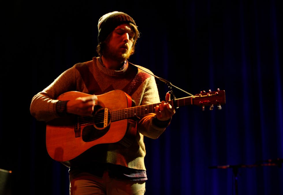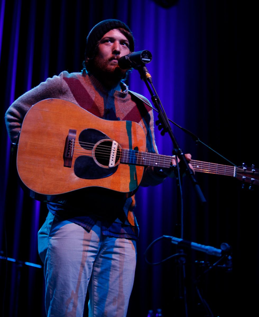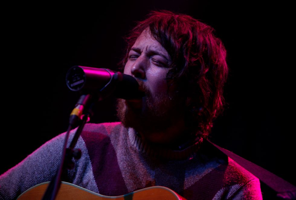 The lion’s share of the set list was pulled from Helplessness Blues, starting with the chirping instrumental set opener “The Cascades,” which segued seamlessly into “Grown Ocean”, propelled its steady but thrusting percussion. Drummer Josh Tillman, who has forged a name for himself in recent years as a refined solo act in his own right (going by J. Tillman), gave this song and others such as “Battery Kinzie” and “The Shrine/An Argument” a much weightier and rocking presence in the live format.