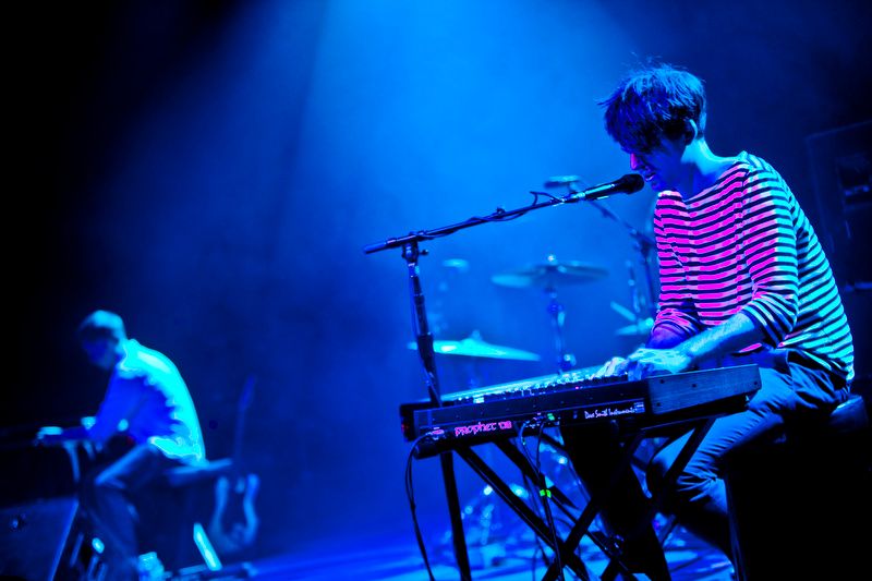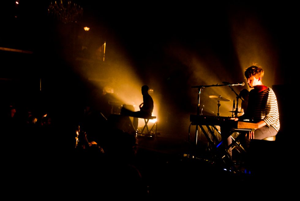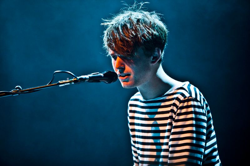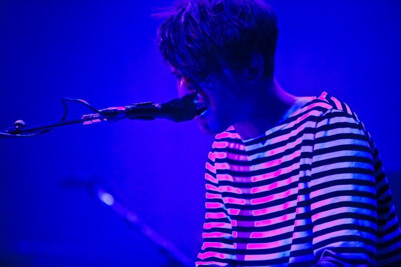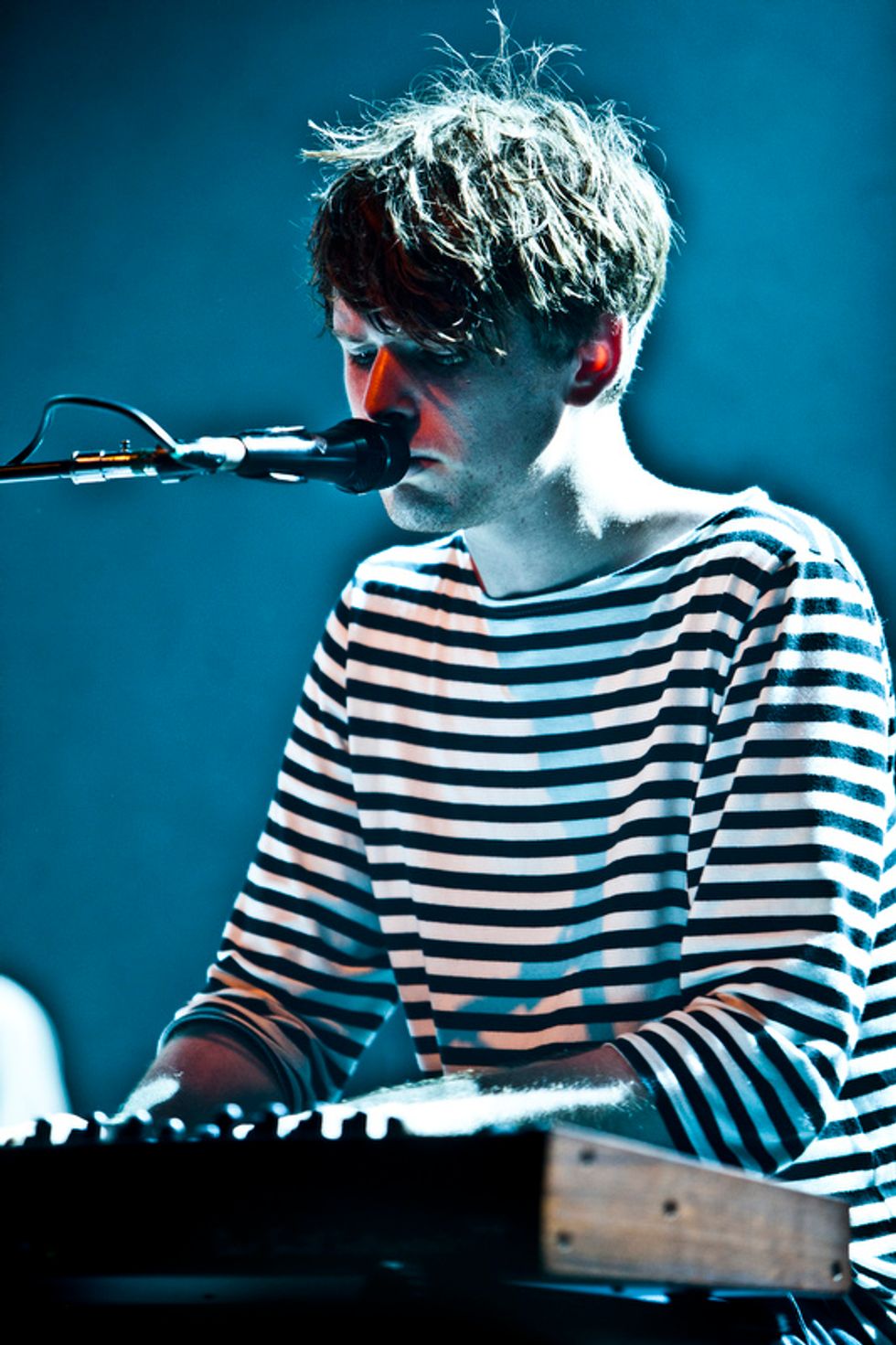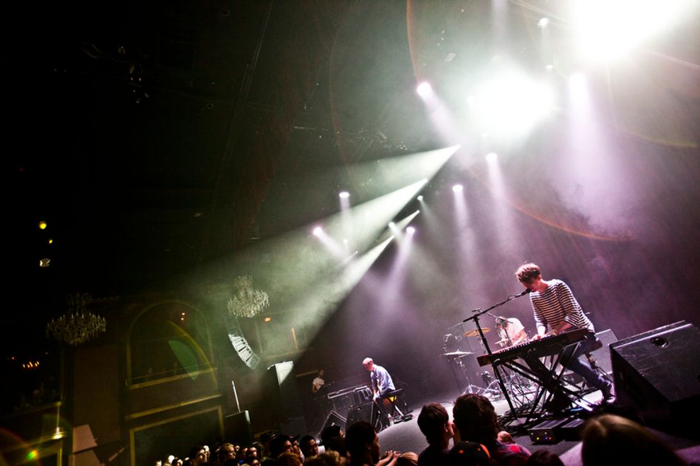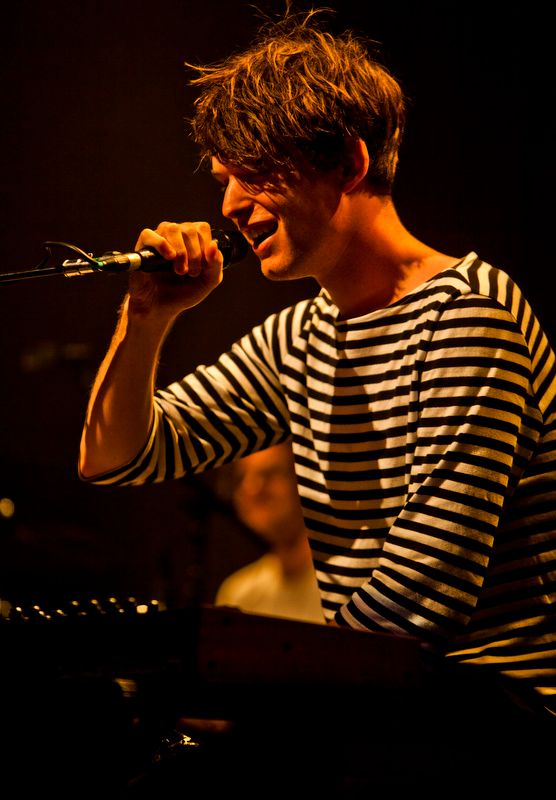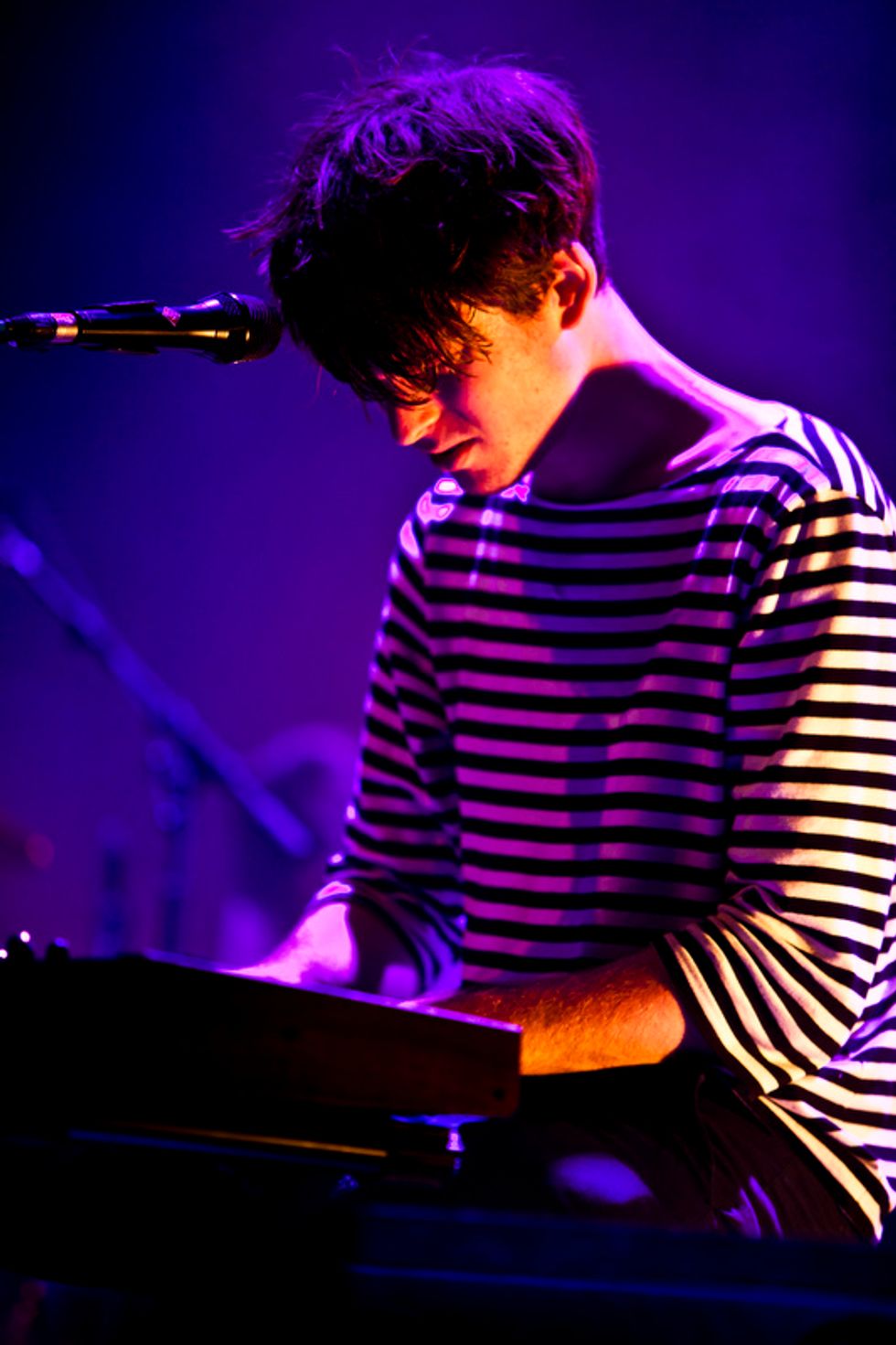 The svelte early 20-something Brit sat in front of his keys and synth for the entirety of the show, adorned with a sassy black-and-white striped, wide-neck shirt, and even sassier Bieber-swoop ’do. He reported having a sore throat, but he could have fooled us, as it’s conceivable auto tune is just that good.
