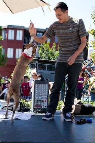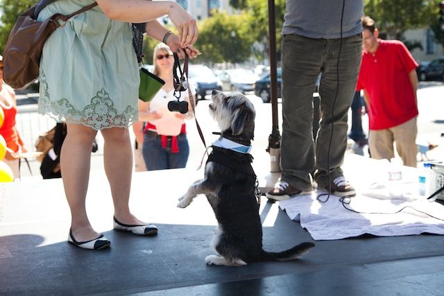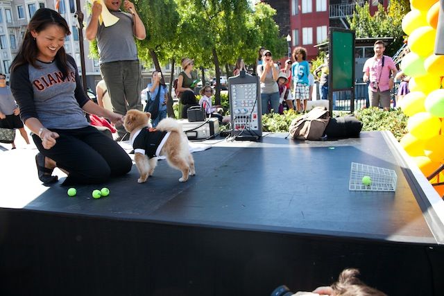 The big winner turned out to be Biscuit, a smart and bouncy Pomeranian whose talents included bobbing/weaving/jumping with human Ivy Chen, and kicking a ball into a basket… behind him! There were also runners-up chosen, and all winners received a variety of goodies, which may have included: a Muttmover Backpack from Timbuk2; a 2-night stay at a Large Deluxe Suite at Wag Hotels; a coupon for one housecall visit by Happy Hounds Massage; a free acupuncture consultation and treatment at American College of Traditional Chinese Medicine; $175 credit toward Zipcar; a costume from Mijo & Bambi; pet gear from Wildebeest; a special book package from Chronicle Books; a complimentary pet portrait session from Nuena Photography; and a $250 SF SPCA Gift Certificate and Swag Bag.