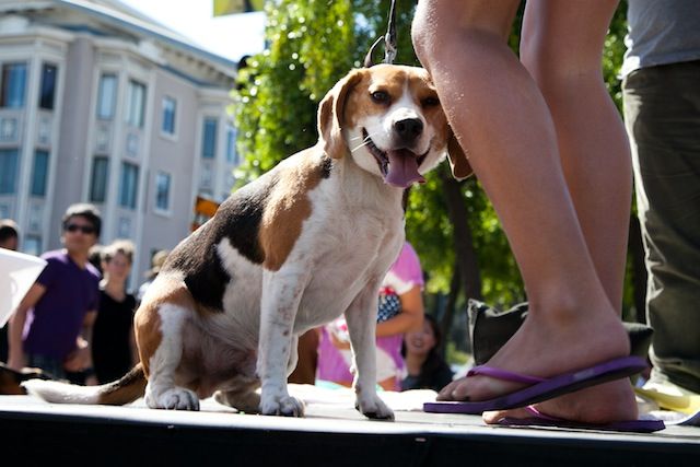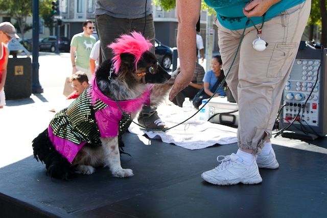 The highlight of the day was the Pet Talent Competition, which was open to talented and stylish animals of all kinds—dogs, cats, birds and whatnot—showing off for bragging rights and bunches of prizes. Esteemed judges included SF District 5 Supervisor Christina Olague, Uptown Almanac’s Kevin Montgomery, Greg Jenkins of Brunswick Group and Harper Clementz, a student at the French-American School in Hayes Valley and one of the SF SPCA’s brigade of young animal advocates.