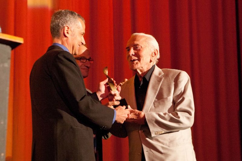 Kirk Douglas receives Freedom of Expression Award from Program Director Jay Rosenblatt and Executive Director Peter Stein