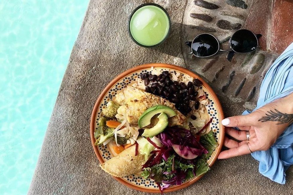 The all-inclusive food is plentiful and mostly plant-based, with an early breakfast spread of chia pudding, fresh fruit, vibrant juices, and coffee with frothy homemade coconut milk. After the daily yoga class on a wooden platform with views of the crashing tide, you can head back to the communal dining area for a second breakfast, abundant with fresh tortillas griddled on the comal and eggs cooked to order. A late lunch features various salads served with an addictive house sesame dressing, beans, rice, and pozole. Dinner brings additional proteins, like an entire salt-baked fish, sourced from the farm and from local fisherfolk and filled to the brim in locally made clay pots.
