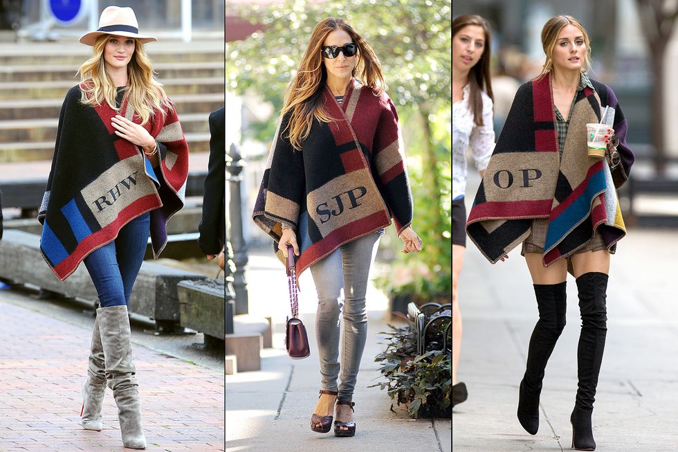Rosie Huntington-Whiteley, Sarah Jessica Parker and Olivia Palermo in the Burberry blanket poncho