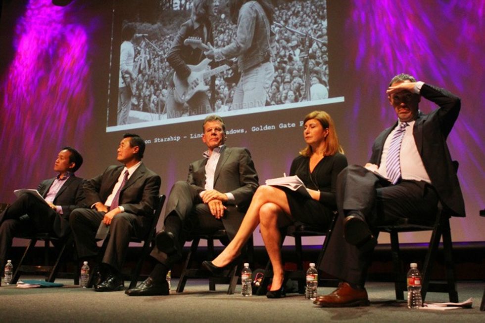 Following a performance by cellist Zoe Keating, CBS News correspondent Priya David Clemens moderated three rounds of discussion. First, each mayoral candidate was asked to come onstage accompanied by the song that best describes him or her. Bevan Dufty proved to be the most charismatic “performer” of the evening as he busted onto the stage dancing to disco and yelling “C’mon, work it!” He added, “I’m happy to be here because I love to go out!” Joanna Rees chose “Where is the Love?” by the Black Eyed Peas and joked, “The mayor’s race just became totally worth it now that I can stand on the Fillmore stage.”