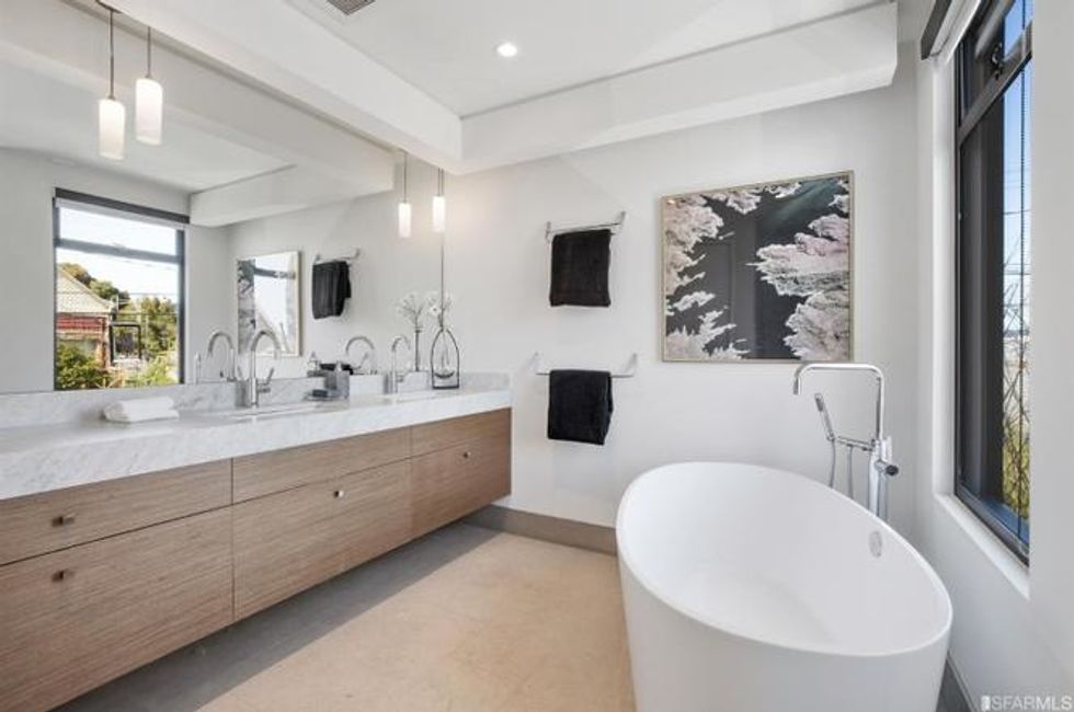 In an unusual twist, this residence's first two levels house the bedrooms, with two on each floor. At street level, there are also a media room and home theater as well as a small private deck off one of the bedrooms.