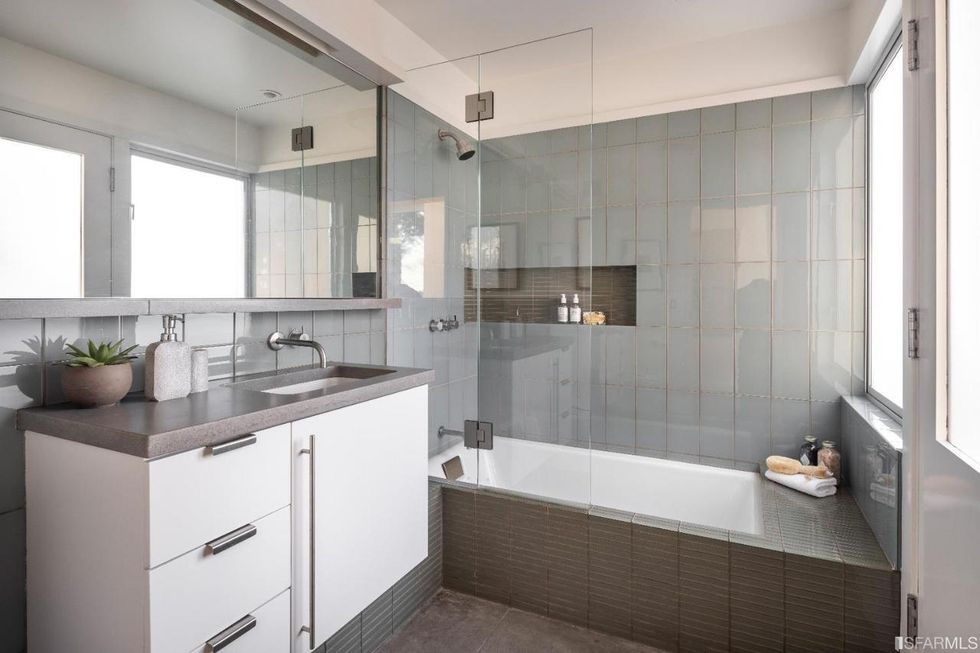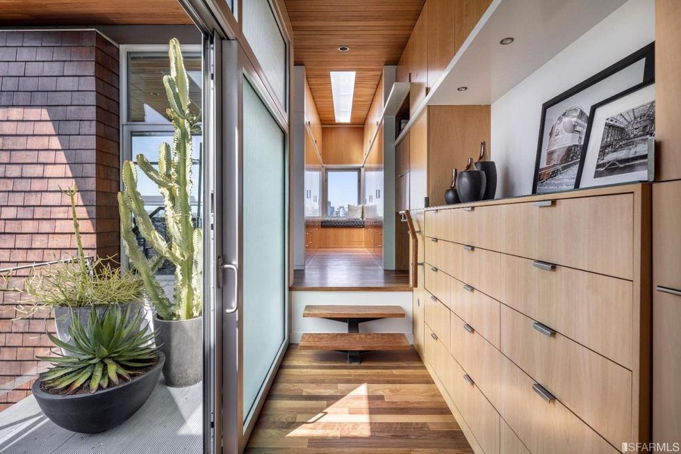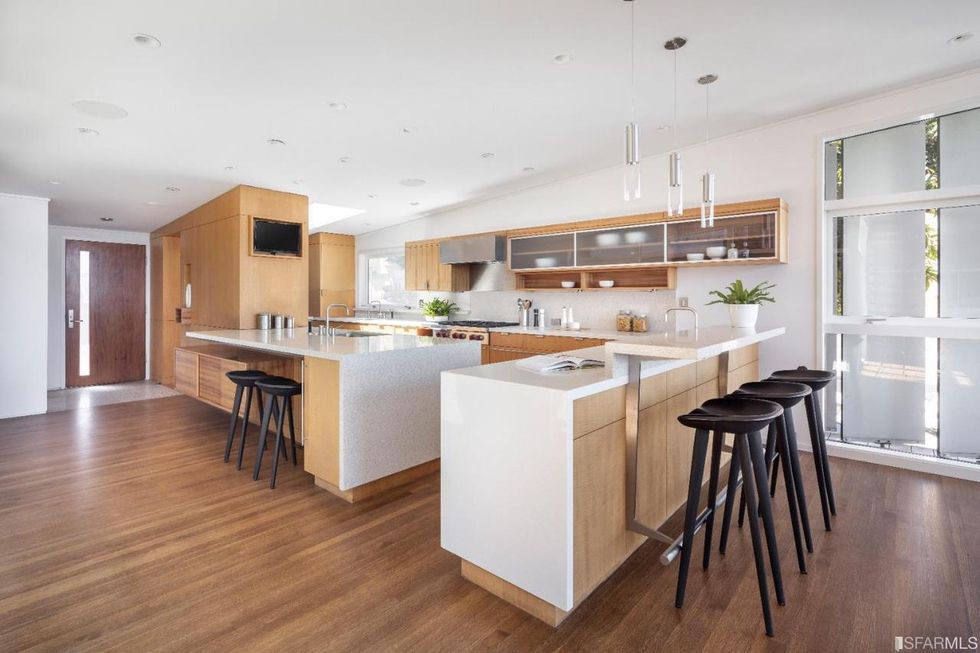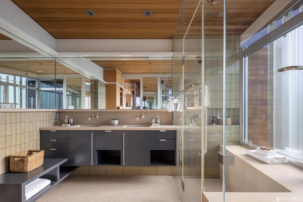 Built in 1948 by architect F.J. McCarthy, the Kellogg House is named after its original owner, and in its first in incarnation, stood two stories with two bedrooms and two-and-a-half bathrooms, according to VULCCA. The house remained largely intact for the next 45 years until 2015 when Sacramento-based Serrao Design and Architecture gave it more modernist appeal with the addition of a full-floor penthouse level primary suite with a covered terrace, one more bedroom, a wellness center with an outdoor shower, multiple decks, and louvers aplenty.