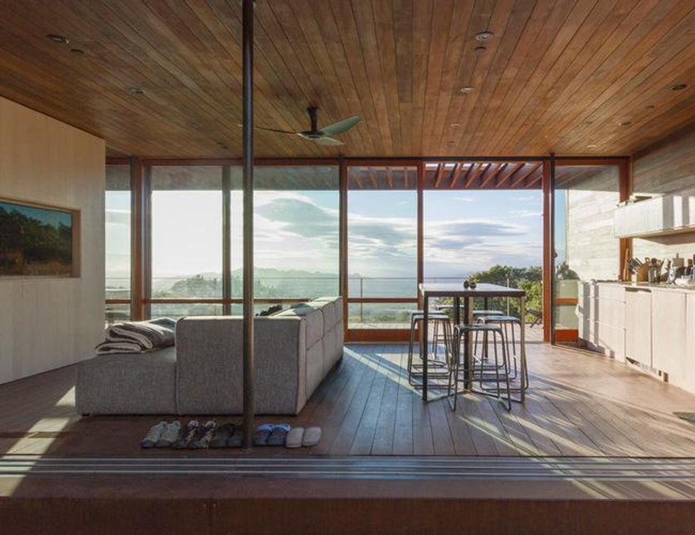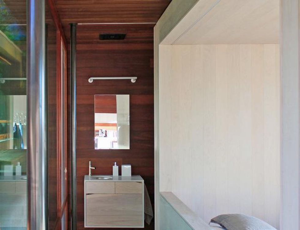 The second sleeping unit with bath offers expansive views of the landscape. Ipe wood lines the interior of the master unit. (Geoffrey Warner, original photo on Houzz)