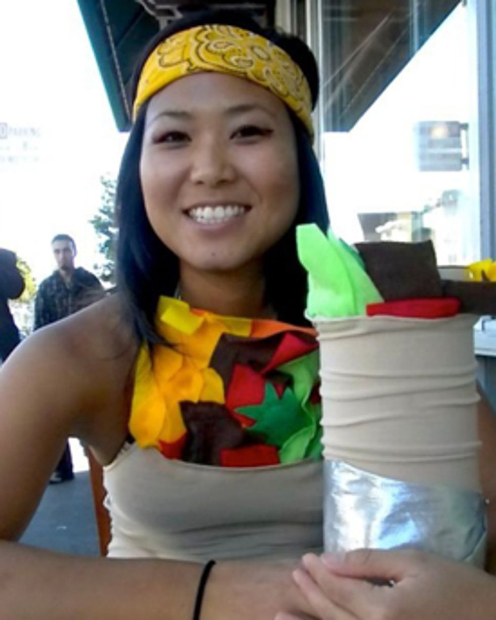I hereby nominate Miss Prisca "Asada/Dank" Chen as the BIGGEST BURRITO LOVER in the great SF Bay Area!! Her love of burritos goes far beyond any I have ever seen. From the trips to Vallarta at 2 am, to writing her senior thesis at UCSC on burrito culture (click here to see the documentary she did) to her most recent Halloween costume (a super burrito de carne asada, complete with cape and warrior hat), P-dizzle is by FAR the epitome of an exemplary burritophile. She has made several pilgrimages to SoCal to visit all the burrito hot spots down there. Her birthday cards were collages of her on top of massive burritos. You should see her room—the walls are covered in photos of her friends eating burritos!!! I am proud to say, I'm on that wall. One of my favorite memories of Prisca is when she gave me a tutorial on the best way to eat a burrito. I believe it began with "first, hold it. Caress it. Feel its warmth and girthiness in your hands. Next, unwrap the foil slowly. Savor its throbbing juiciness. The anticipation is key. " And continued, likewise.