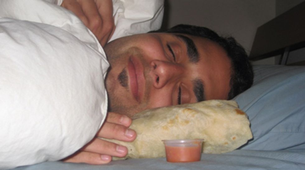 Everybody knows how much I love burritos. I tweet, text, facebook, and talk about them entirely too much. Ever since I've lived in San Francisco I've been on the constant hunt to keep finding better and better burritos. I need a spot in every district so I can feel content knowing there's always a burrito a few blocks away. The Norcal burrito at EL Burrito Express in the Sunset, Carnitas burrito at Il Castillo in the Castro, and the chicken burrito at Gordos in the Inner Sunset are probably my favorites. I always get super burritos, no reason to mess with anything less. I prefer black beans generally, always ask for both hot and mild salsa, extra cheese and sour cream, and I love when the burritos are grilled after being put together to make the tortillas crunchy. I always tell myself I'll save the second half for later, but who am I kidding. I love burritos so much I chose to do a mocking sexy photoshoot of me in lingerie while eating a burrito, the best of both worlds? I've attached it. Seriously this sounds like my calling.