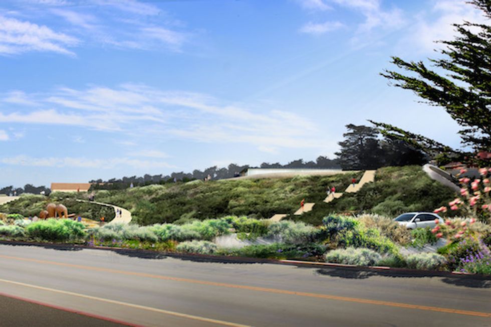 The Presidio Parklands Project, as it’s known, started with an open call for submissions. Hundreds of international architectural firms provided initial designs for the 13-acre space that will connect the Presidio, north over the tunnel tops, to Crissy Field. (Anything would be an improvement over the original Caltrans design, which was simply a vast open grassy field that would provide no protection from the winds that regularly whip in from the Pacific.)